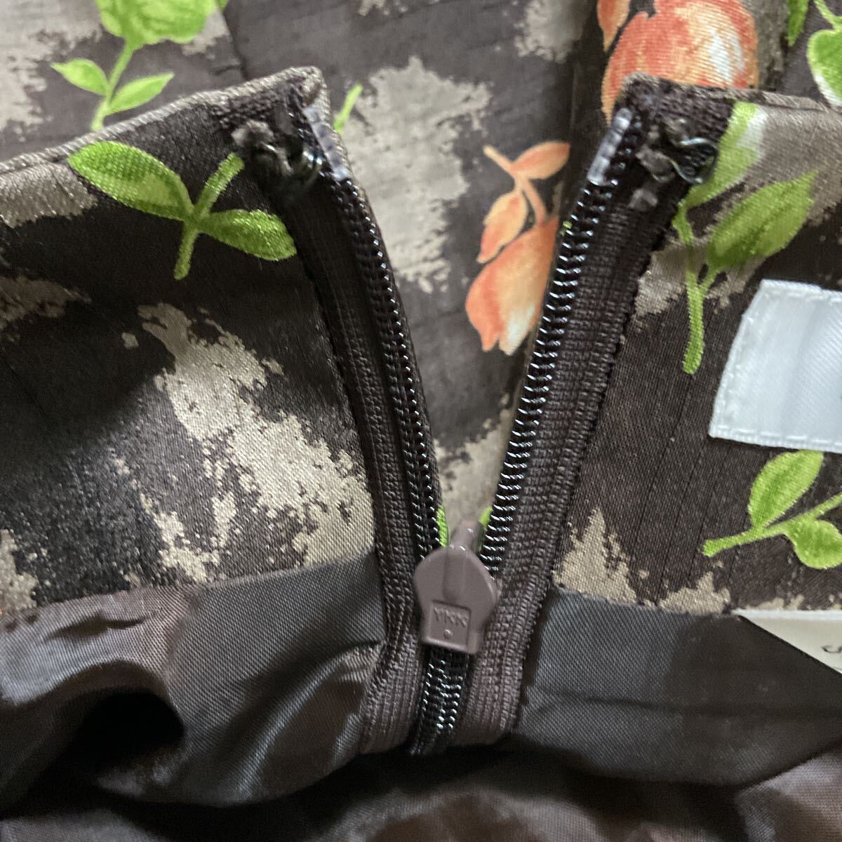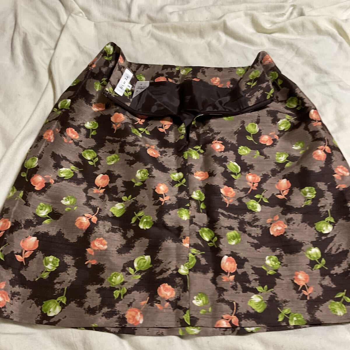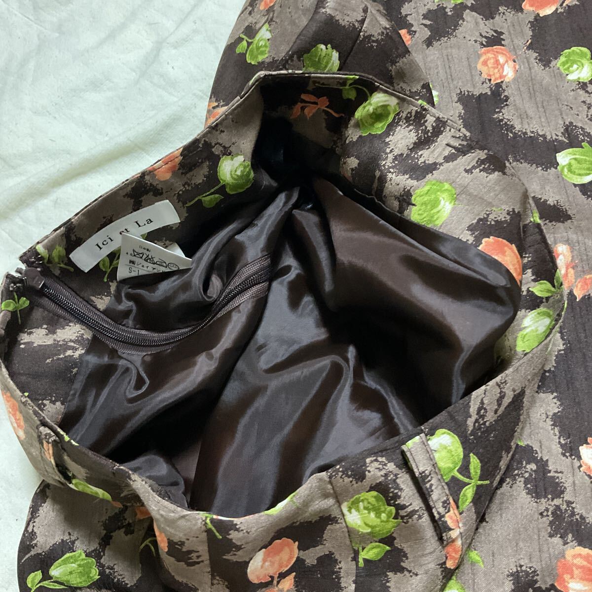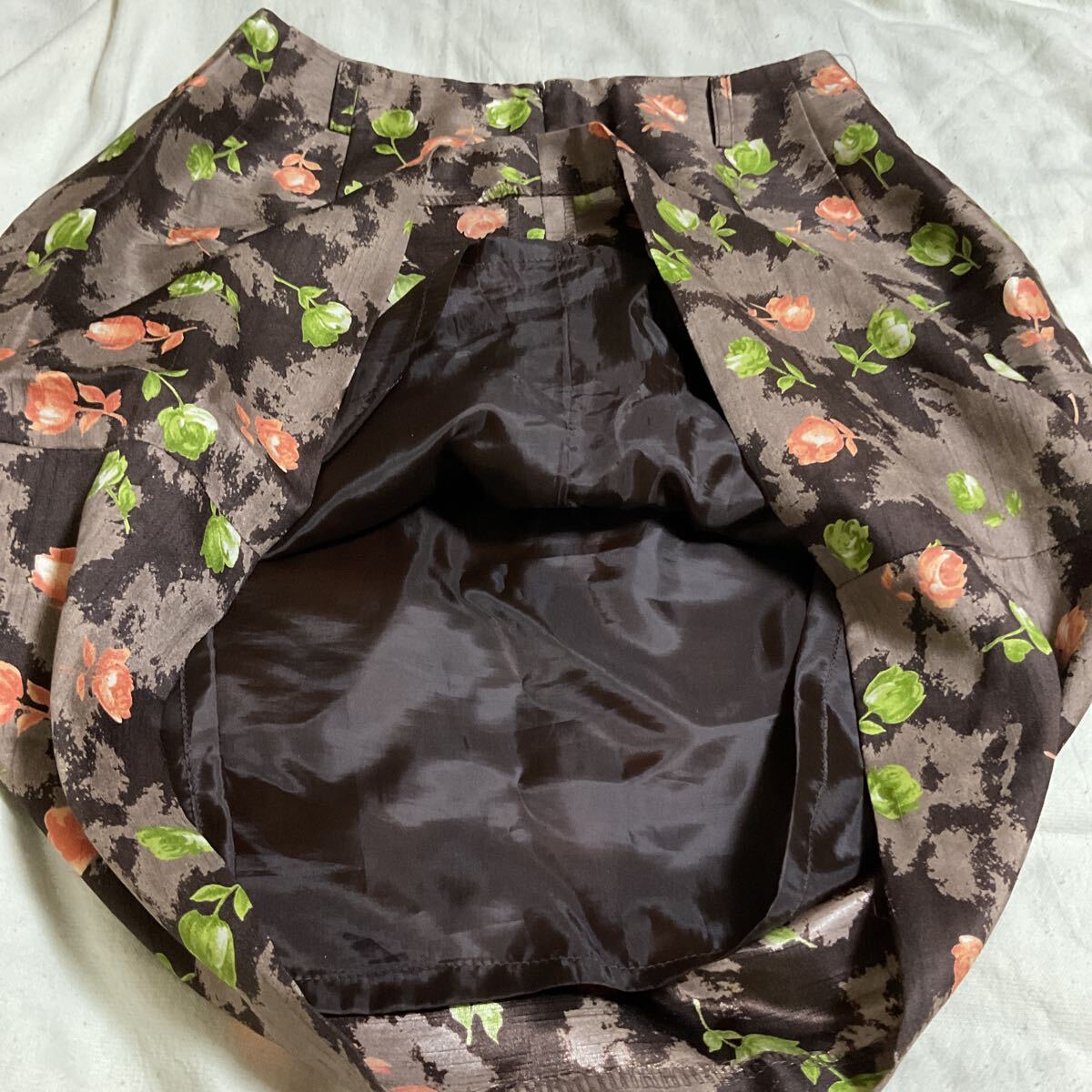 スカート ミニスカート サイズ3 実測wゴム無64丈50cm ポケ無 別布裏地 ポリエステル100% 薄手 焦茶色に花柄 Ici et La 日本製
