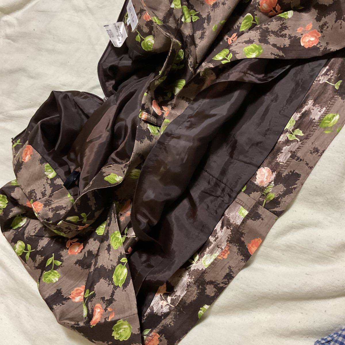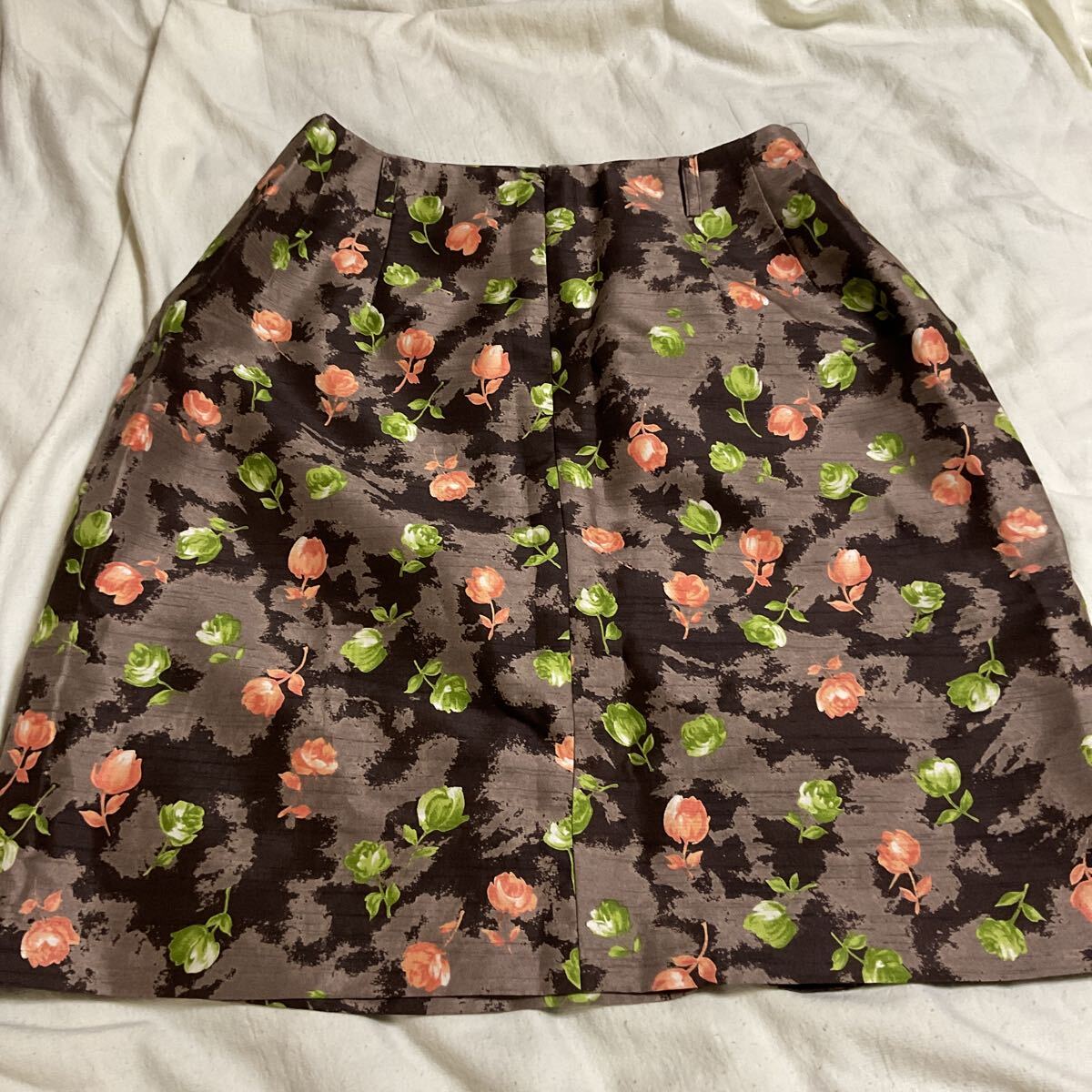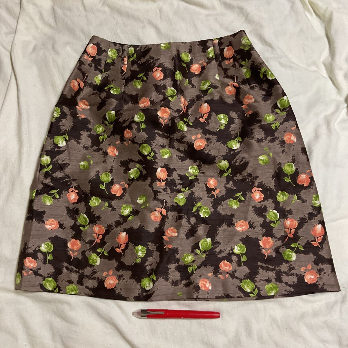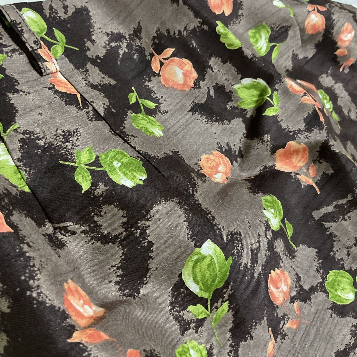 スカート ミニスカート サイズ3 実測wゴム無64丈50cm ポケ無 別布裏地 ポリエステル100% 薄手 焦茶色に花柄 Ici et La 日本製