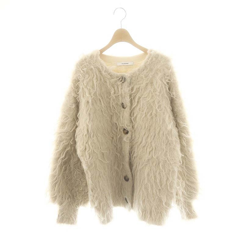 ジルスチュアート JILL STUART 23AW シャギーニットジャケット ノーカラー FR ベージュ /HK ■OS レディース