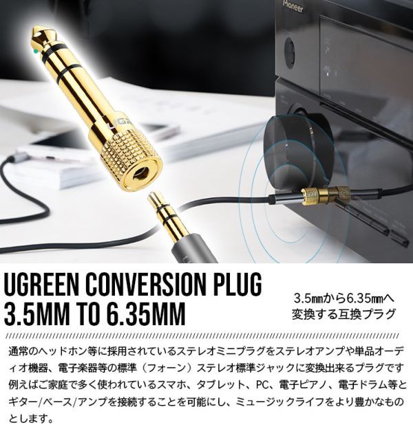 _ UGREEN 3.5mm to 6.35mm 変換プラグとはステレオ標準プラグとステレオミニジャックへの変換実現。