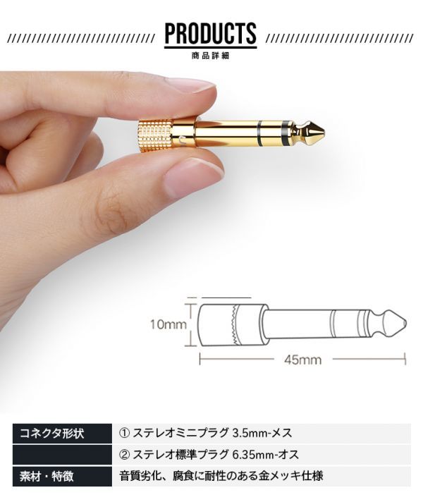 _ コネクタ仕様:3.5mm ステレオミニプラグ - メス;6.35mm ステレオ標準プラグ - オス。