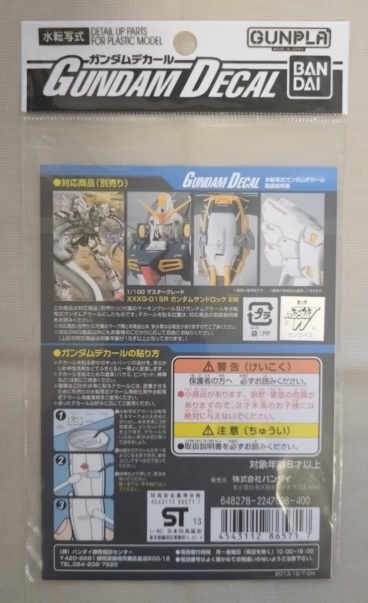 【未使用】バンダイ 水転写式 ガンダム デカール 1/100 MG ガンダムサンドロック EW 99