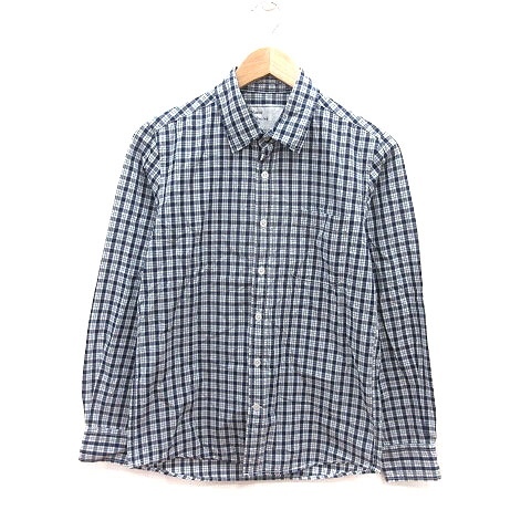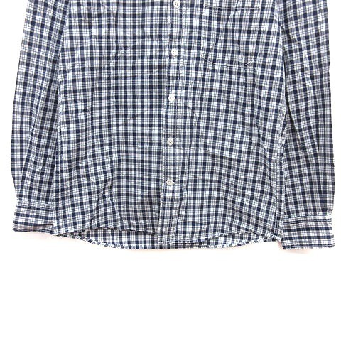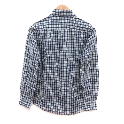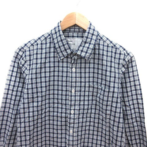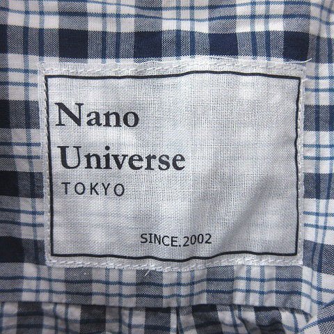 ナノユニバース nano universe シャツ チェック 長袖 S 紺 ネイビー 白 ホワイト /MS メンズ