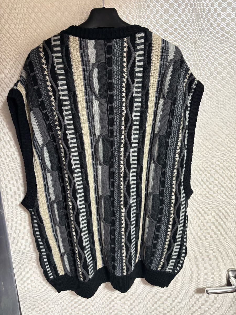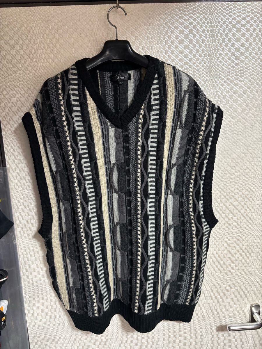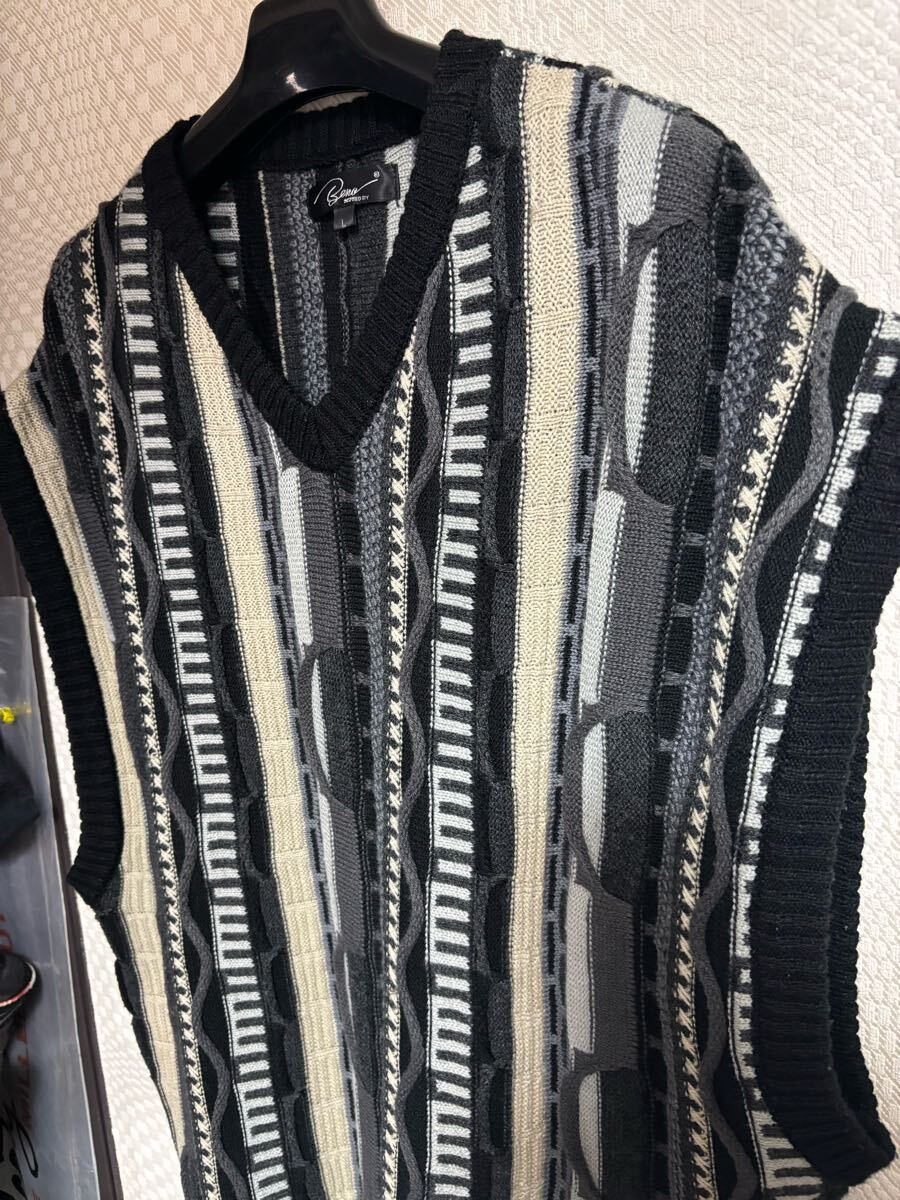 ワイドシルエットのアクリルニットベストです。サイズ L表記ですが X Lサイズです。平置き脇下身幅67、着丈70肩幅60センチ位です。