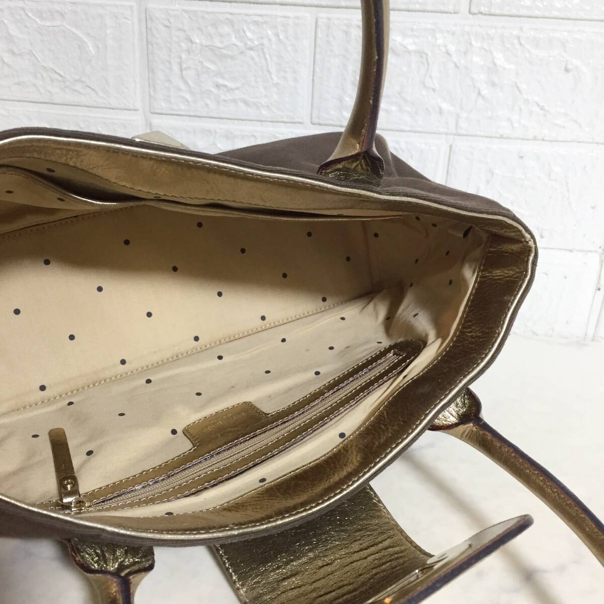 no35217 kate spade new york ケイトスペード レザー キャンバス 肩掛けショルダー トート バッグ
