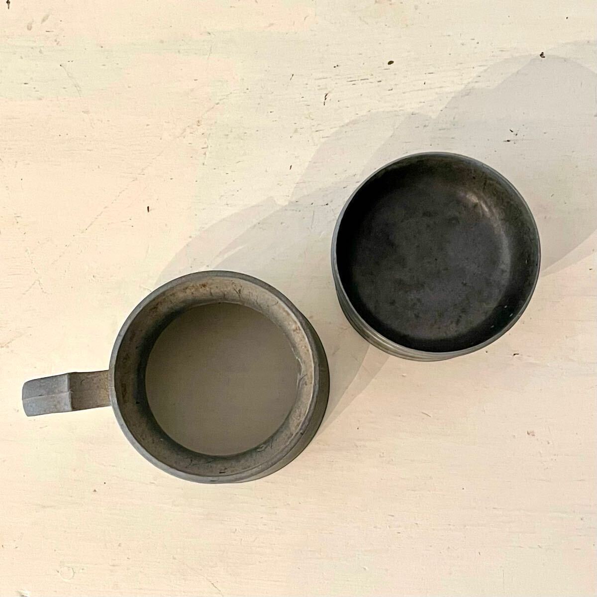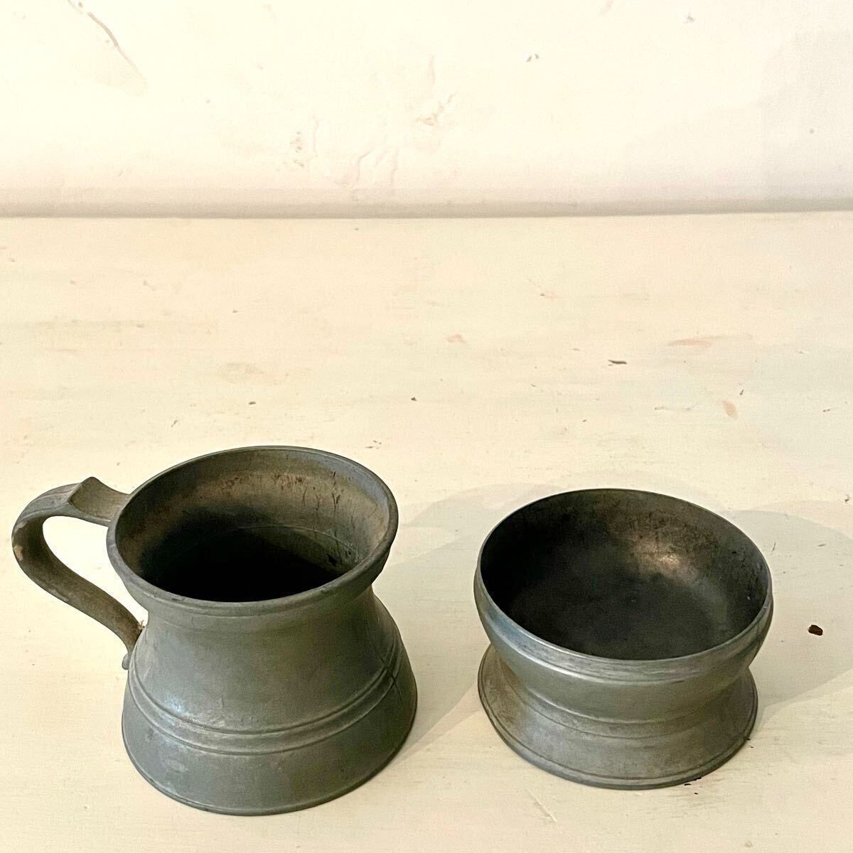 雰囲気のあるピューター のカップ?になります。半分に分かれます。詳しくわかりません。ご了承願います。