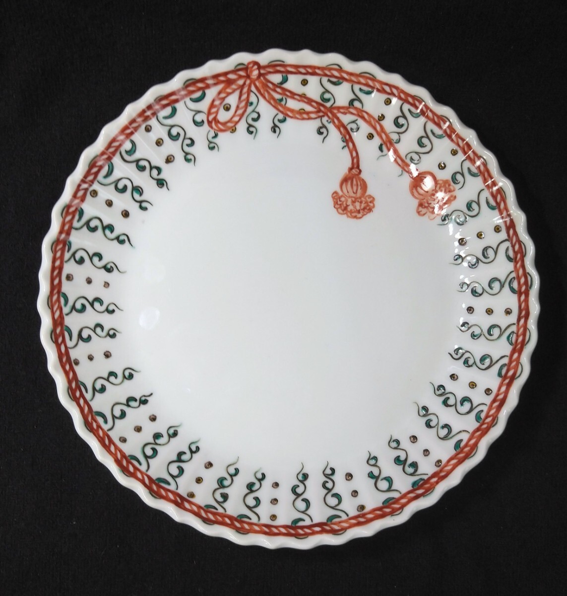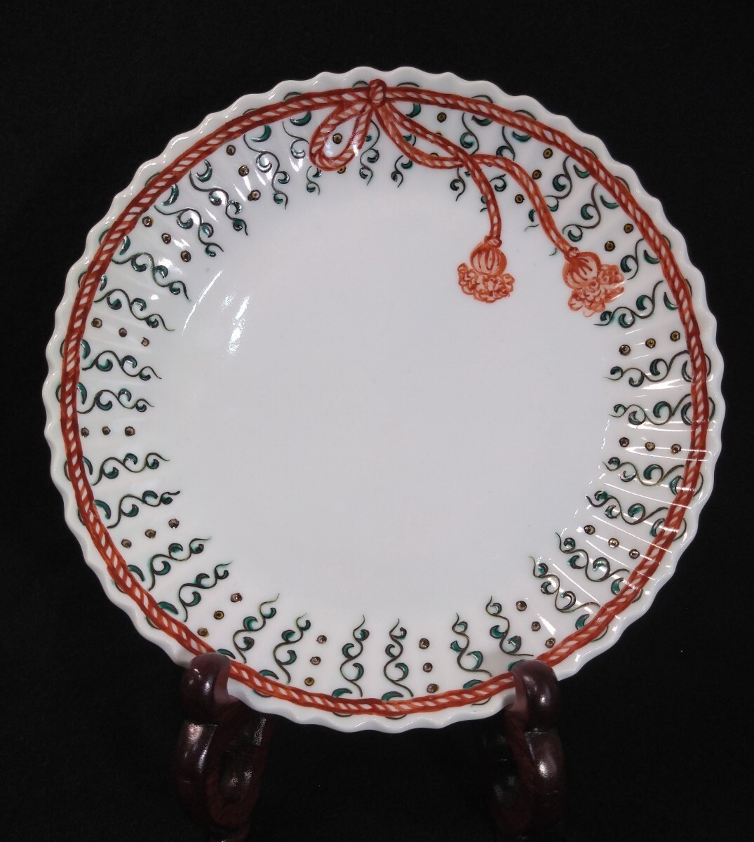 清楚な欧州テイストの美しい中皿でございます。「裕夫」と書いてあります。素人採寸で申し訳ございませんが、径19.7cm、高さ3.2cmでございます。