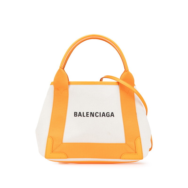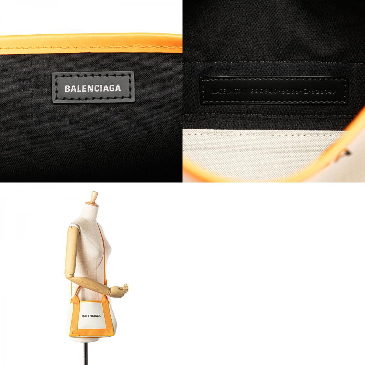 バレンシアガ ネイビーカバス XS ハンドバッグ ショルダーバッグ 2WAY 390346 ベージュ オレンジ キャンバス レザー BALENCIAGA 【中古】