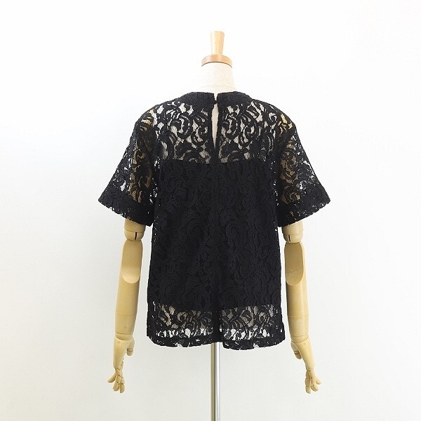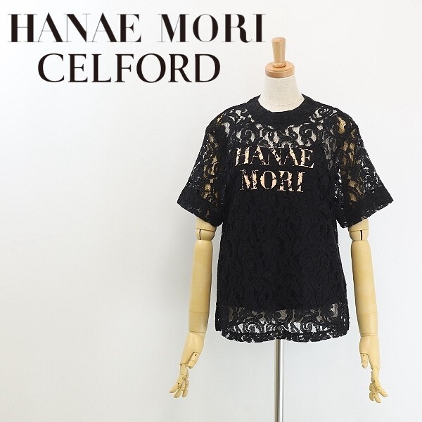 美品◆HANAE MORI ハナエモリ × セルフォード 総レース ロゴプリント 半袖 トップス カットソー 黒 ブラック 38 | |