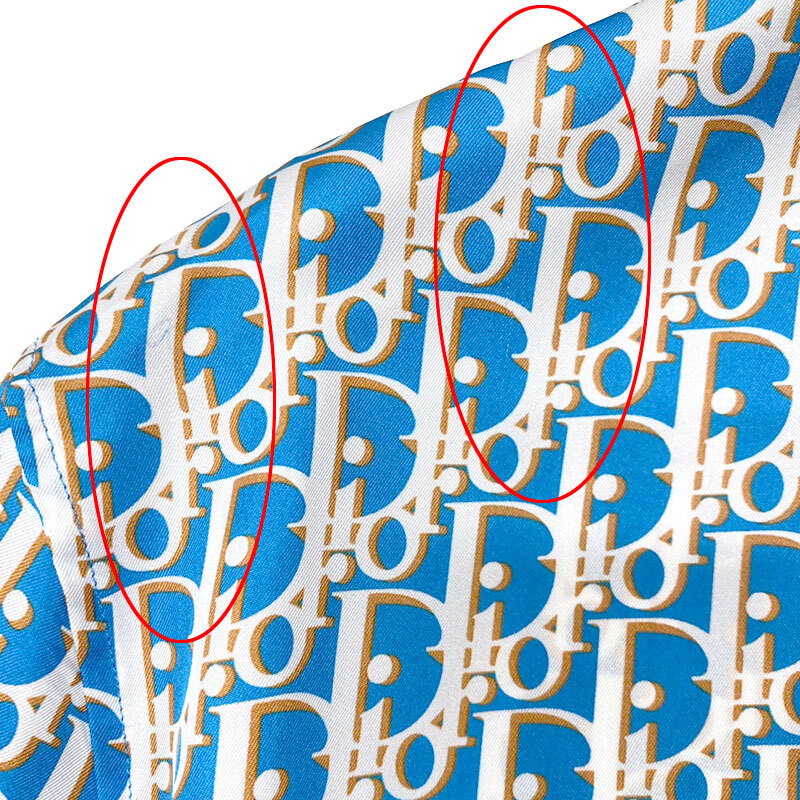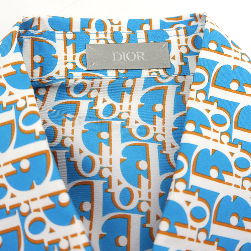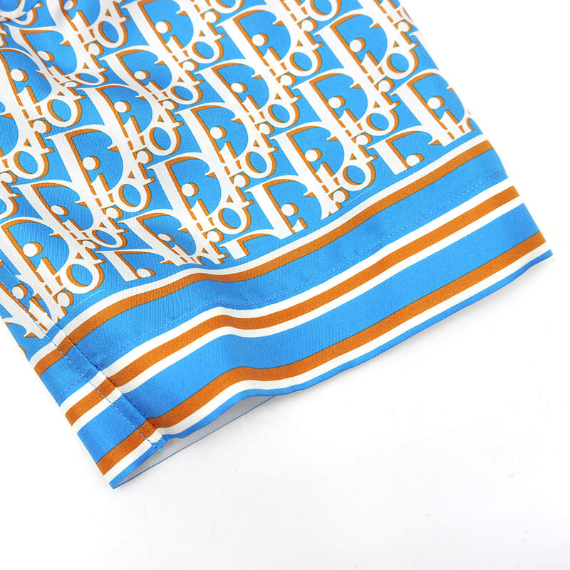 ・ブルー、ホワイト、オレンジで構成された総柄シャツです。多少のダメージがございますが、全体的に綺麗な印象です。