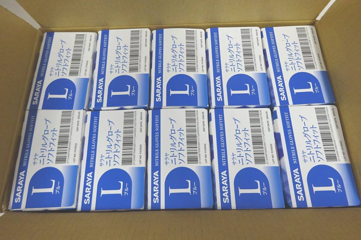 | [宅100]0200 粉無手袋 サラヤ ニトリルグローブ ソフトフィット L(250枚入) 10箱セット | ||