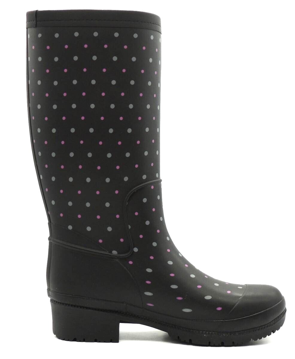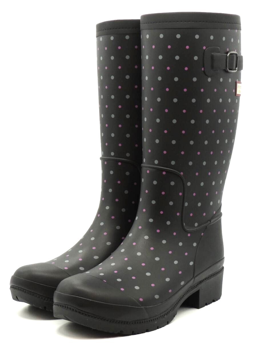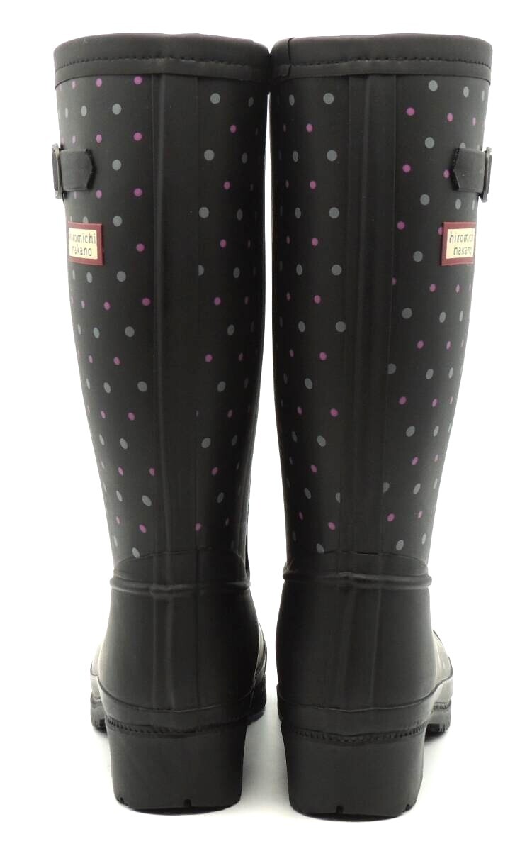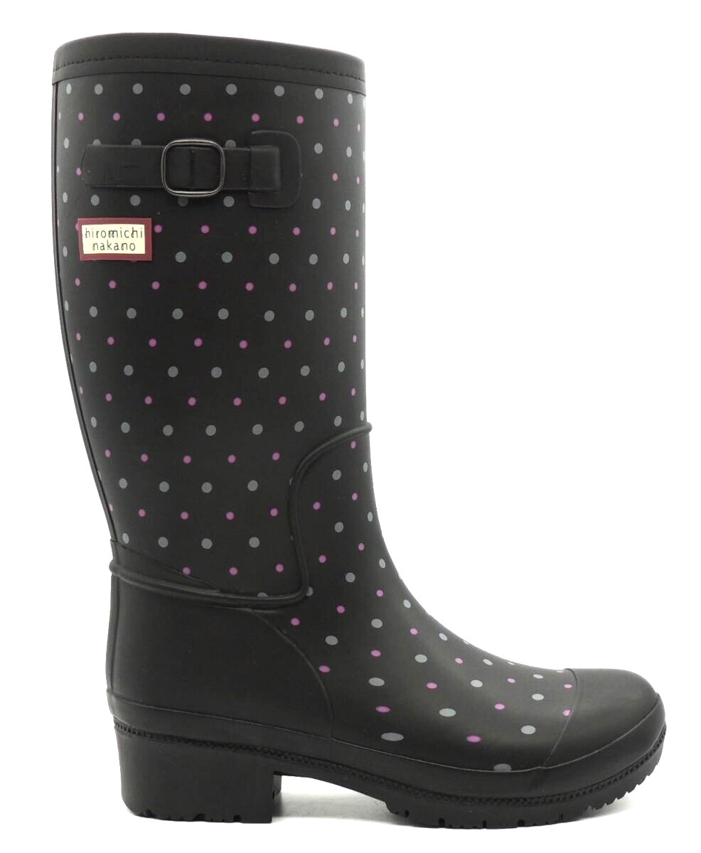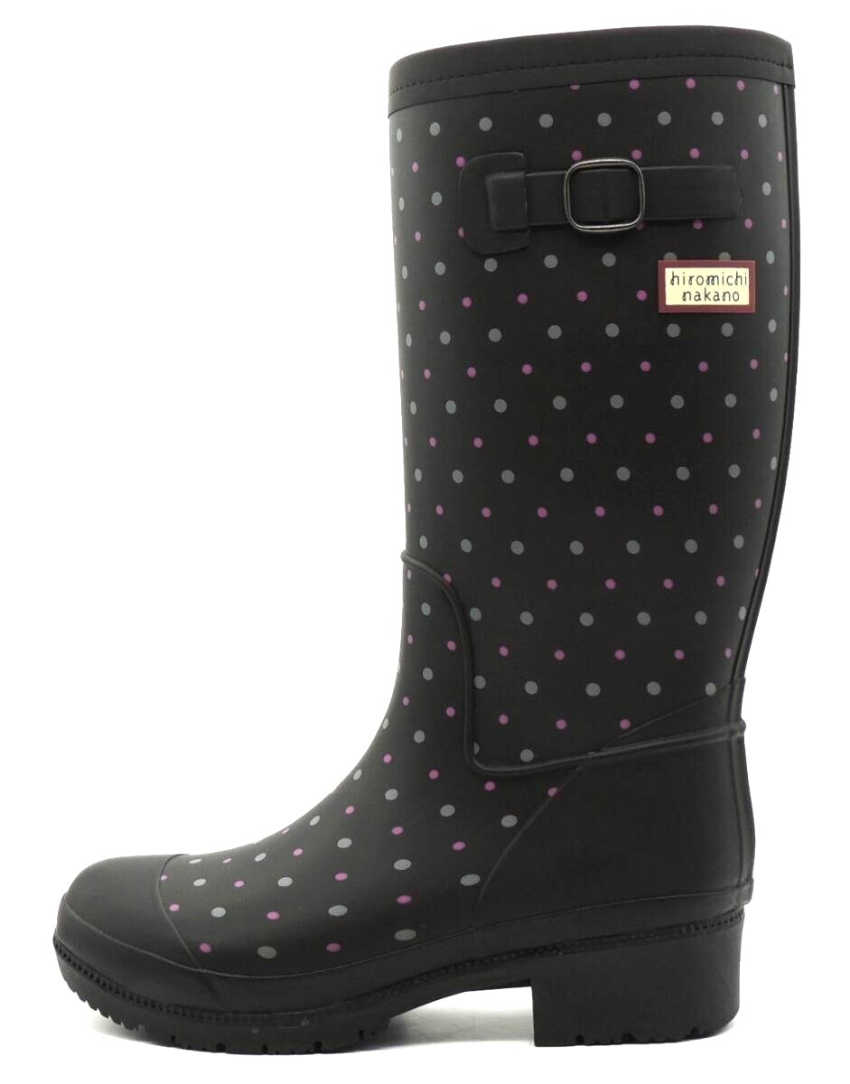 軽量 長靴 レインブーツ ラバーブーツ ドット柄 ジュニア ムーンスター ヒロミチナカノ 115R ブラック 23.0cm
