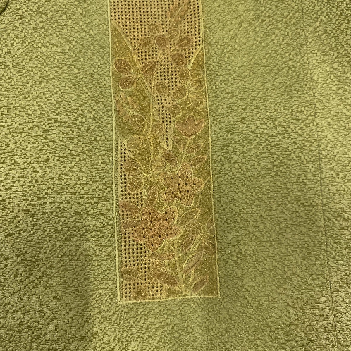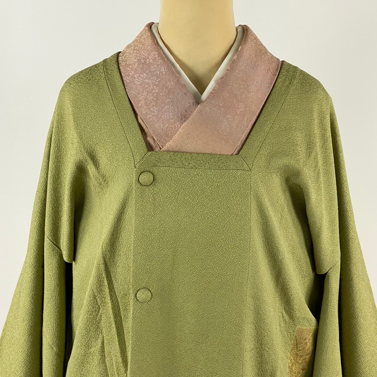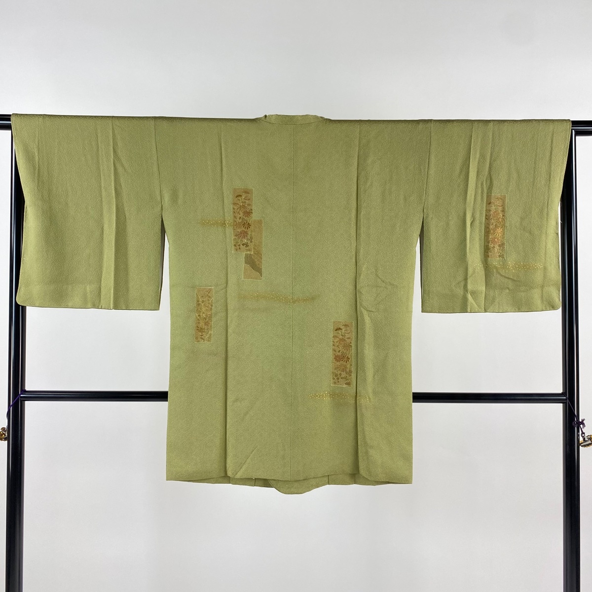 | 道行 秀品 和装コート 草花 短冊 刺繍 金彩 よもぎ色 身丈85 裄丈66.5 M 正絹 【中古】 |