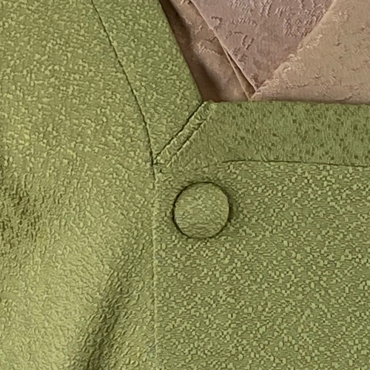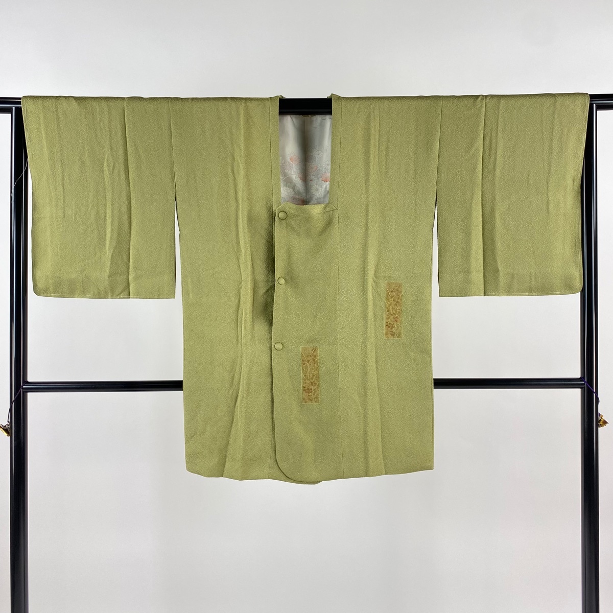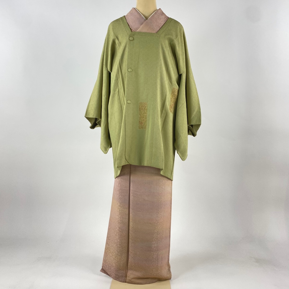 | 道行 秀品 和装コート 草花 短冊 刺繍 金彩 よもぎ色 身丈85 裄丈66.5 M 正絹 【中古】 |