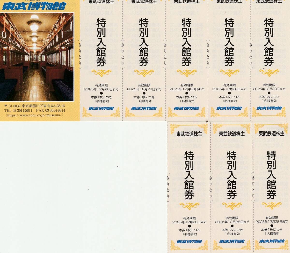 | ●東武博物館 特別入館券です。 ●有効期限は2025年12月28日までです。 ●入札価格は割引券8枚の価格です。 ●お支払金額は、落札価格+送料になります。 | ||