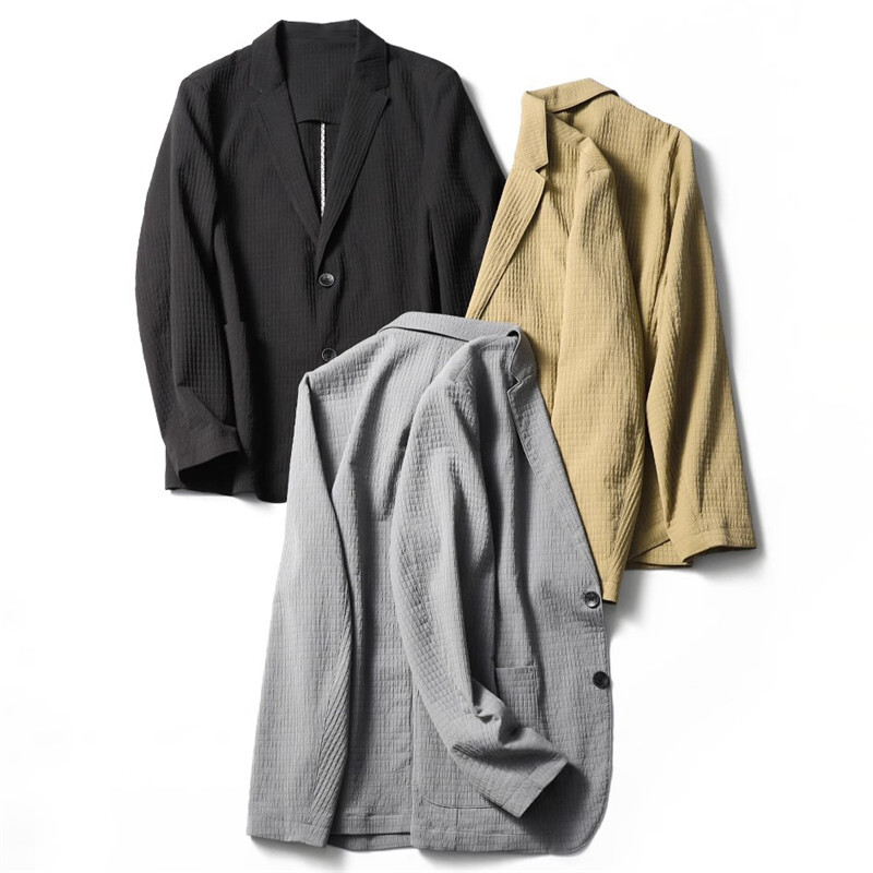 W0491-3XL 黒色 新品 サマー ブレザー ゴルフ シアサッカー メンズ テーラードジャケット ノンアイロン ジャケット 薄手 春夏 ジャケット