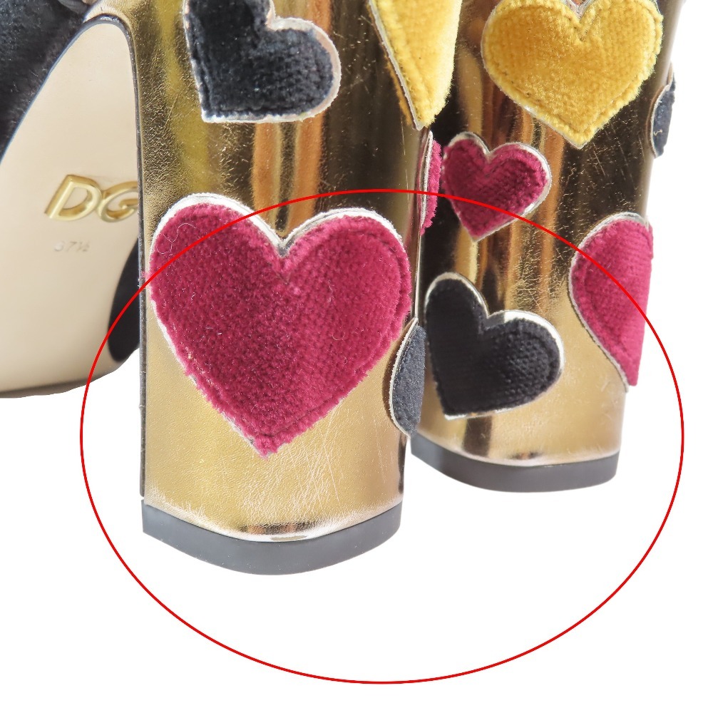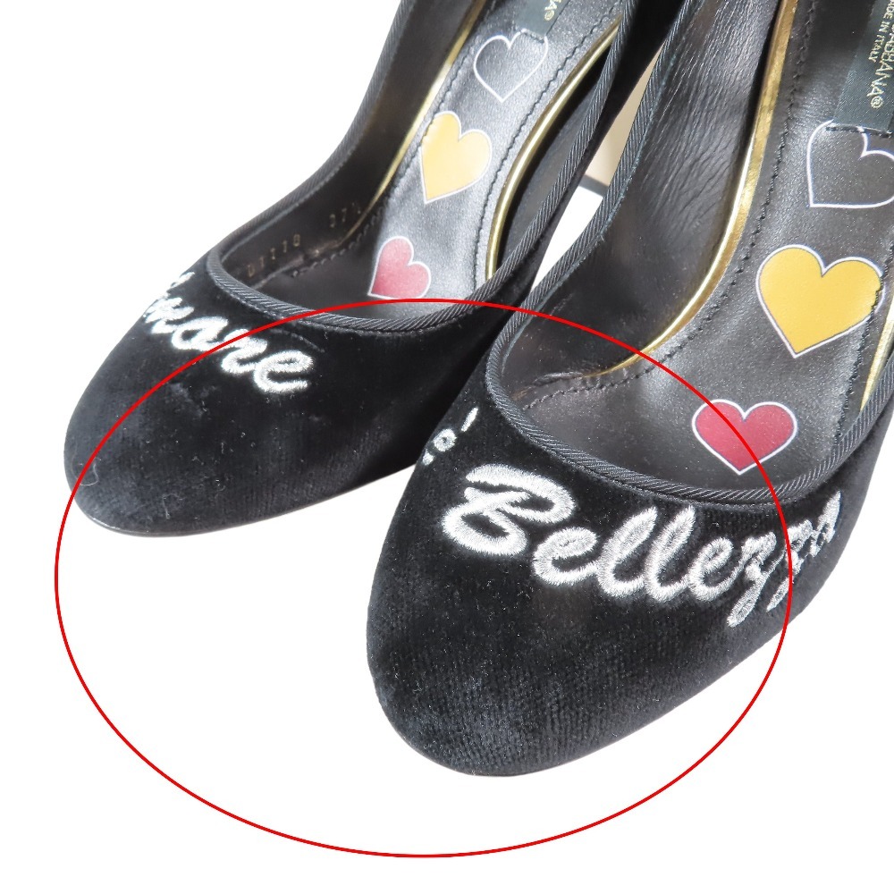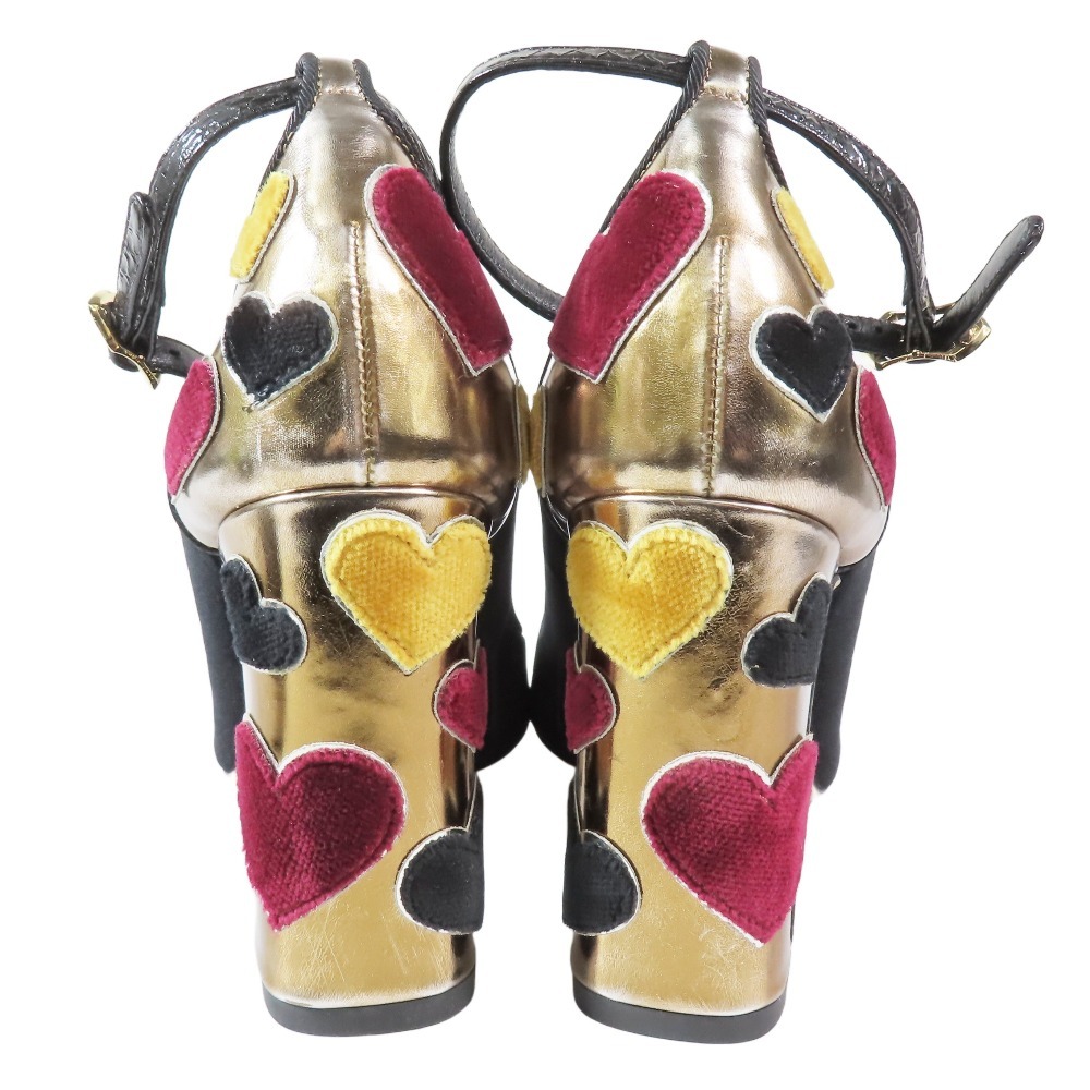 商品名:DOLCE&GABBANA ドルチェ&ガッバーナ ベロア パンプス アンクルストラップ ハートモチーフ 刺繍 37.5 ブラック ゴールド