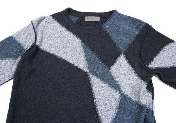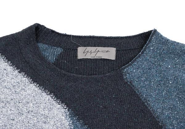 | ヨウジヤマモト プールオムYohji Yamamoto POUR HOMME 幾何学ジャガードインサイドアウトニットセーター 紺水色他3 |