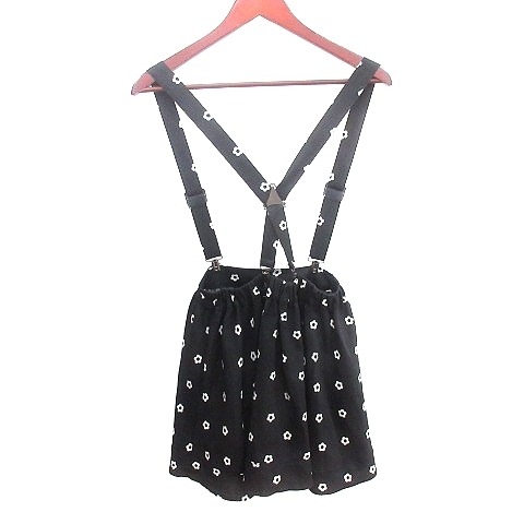 コルザ COLZA キュロットパンツ ショート サスペンダー 花柄 M 黒 ブラック /AU ●RY レディース