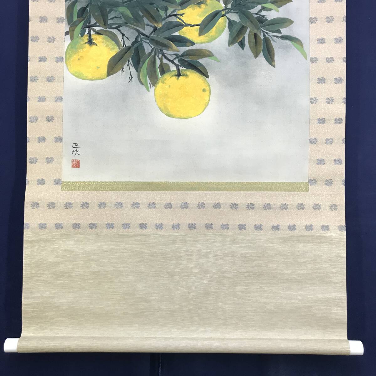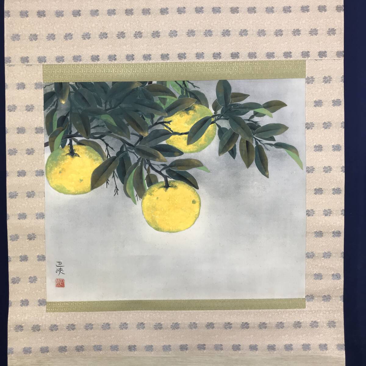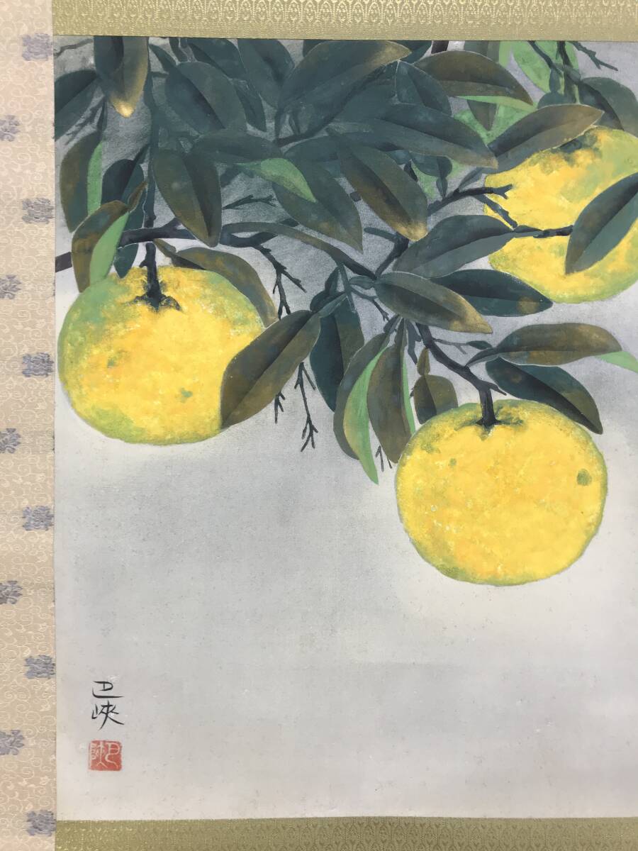 真作/三上巴峡/黄金橙/おうごんたん/ダイダイ/みかん図/掛軸☆宝船☆AJ-230