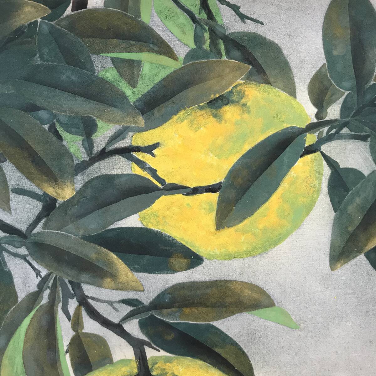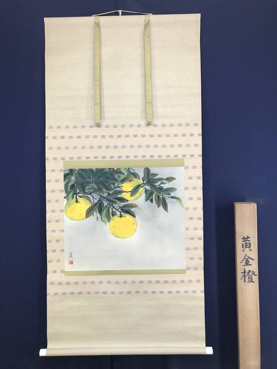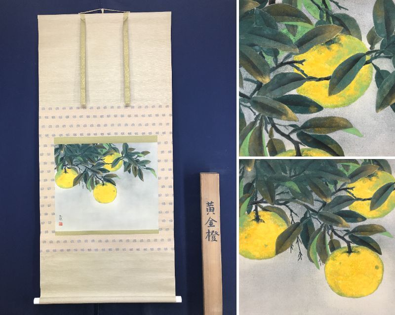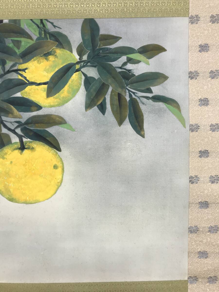 真作/三上巴峡/黄金橙/おうごんたん/ダイダイ/みかん図/掛軸☆宝船☆AJ-230