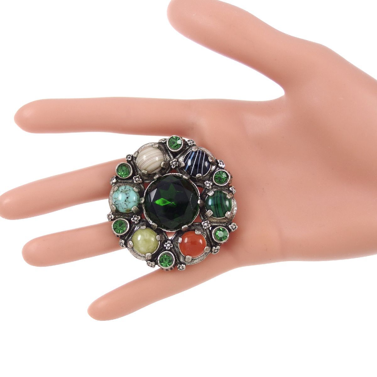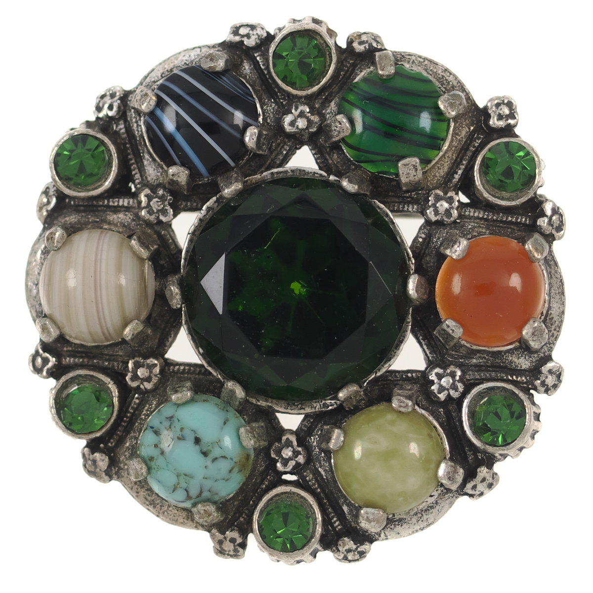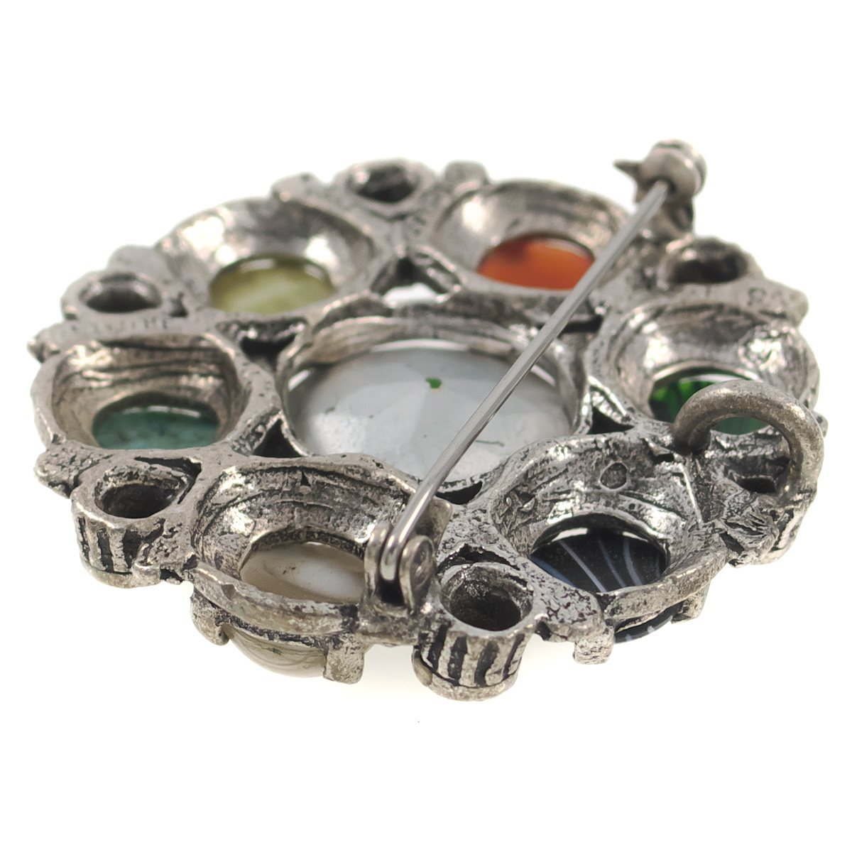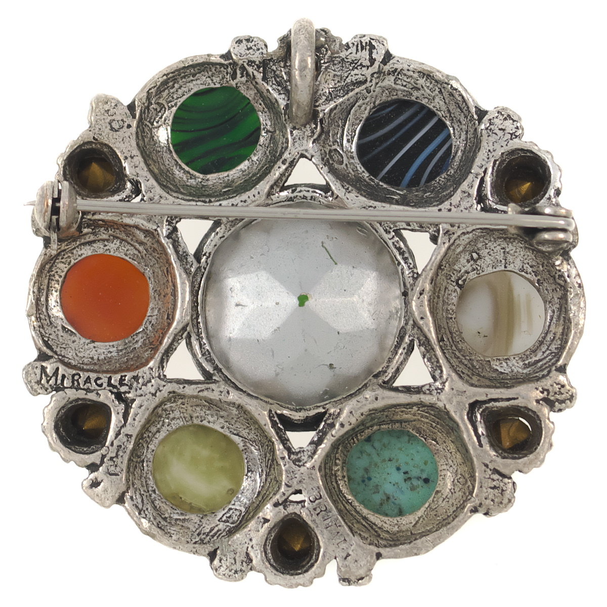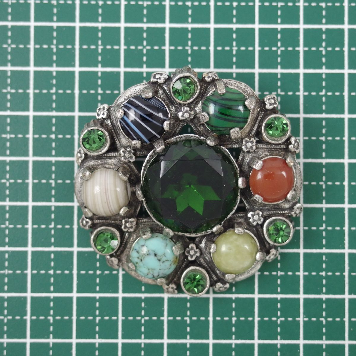 UK3878◆【MIRACLE】◆ マルチカラーストーン 色石 フラワーモチーフ 花 ミラクル ケルト イギリス ◆ ヴィンテージブローチ ◆