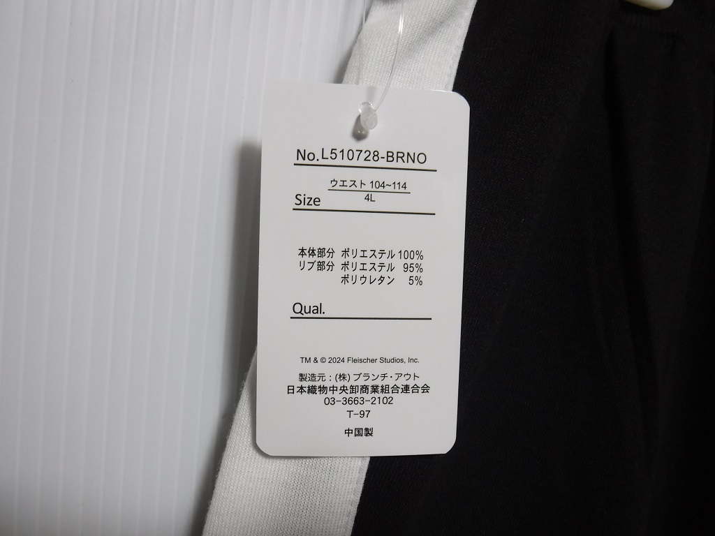 商品情報 | 未使用 両サイドにポケット+後ろ右側のみポケット 素材 ポリエステル100% (リブ部分 ポリエステル95% ポリウレタン5%) SIZE=4L ウエスト104~114 |