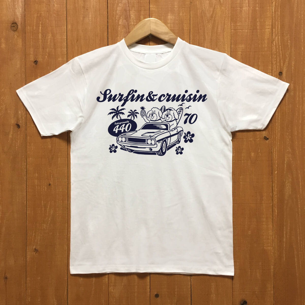 ■ SURFIN & CRUISIN Tシャツ■XLサイズ(ホワイトxネイビー)アメ車 モパ- MOPAR DODGE CHALLENGER チャレンジャー サーフィン