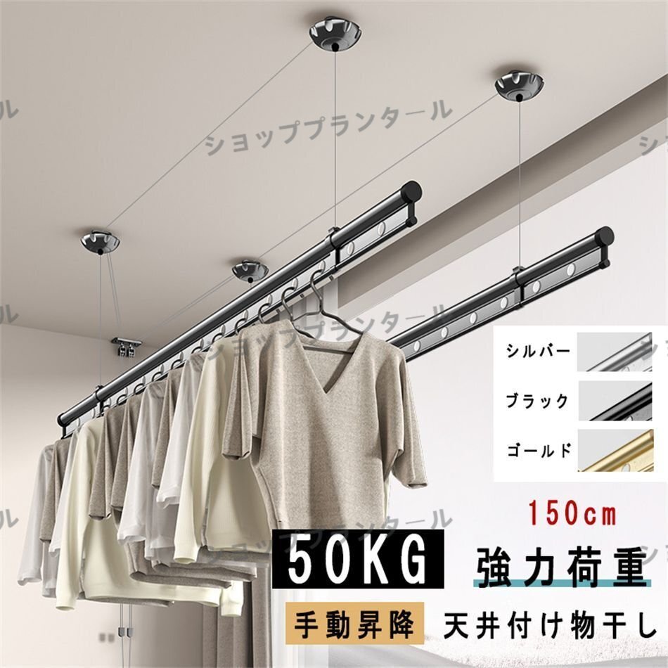 天井付け物干し 昇降カク ブラック | 洗濯干し 室内 洗濯物干し 物干し ものほし 物干 壁掛け 吊り下げ 天井 ハンガーバー ウォールバー