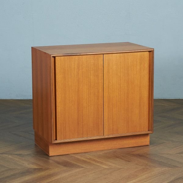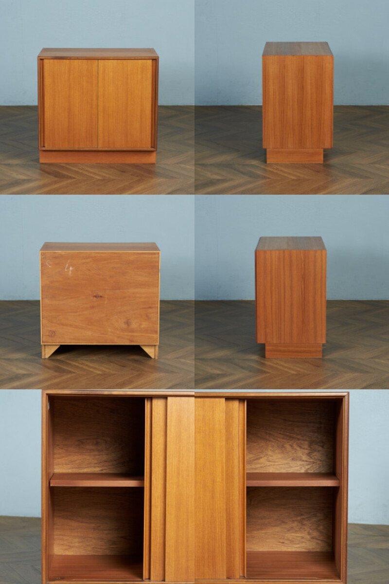 イギリスのミッドセンチュリーを代表するブランド、G-PLAN(ジープラン)社による、Roger Bennett(ロジャー・ベネット)デザイン、Form FIVE(フォーム・ファイブ)シリーズ ベースユニットです。 1967年に発表されたRoger BennettデザインのForm FIVE。直線を基調としたシンプルなデザインで、かっこよく洗練された佇まいが魅力です。取っ手が無い、よりシンプルなデザインと、堅牢な正方形の真鍮製ハンドルがアクセントの取っ手付きデザインの2パターンが存在します。※取手無し仕様のキャビネット引扉は閉めている時、2枚の扉が段差なしでフラットな面になる特殊なレール構造が採用されています。日本国内での流通は極少数なので、めぐり逢うことが大変困難な希少なお品です。 |