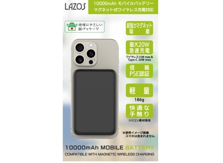 モバイルバッテリー マグネット式ワイヤレス充電対応 10000mAh