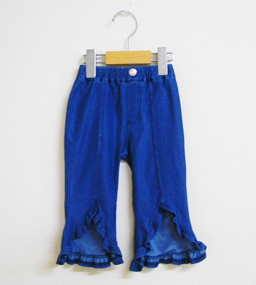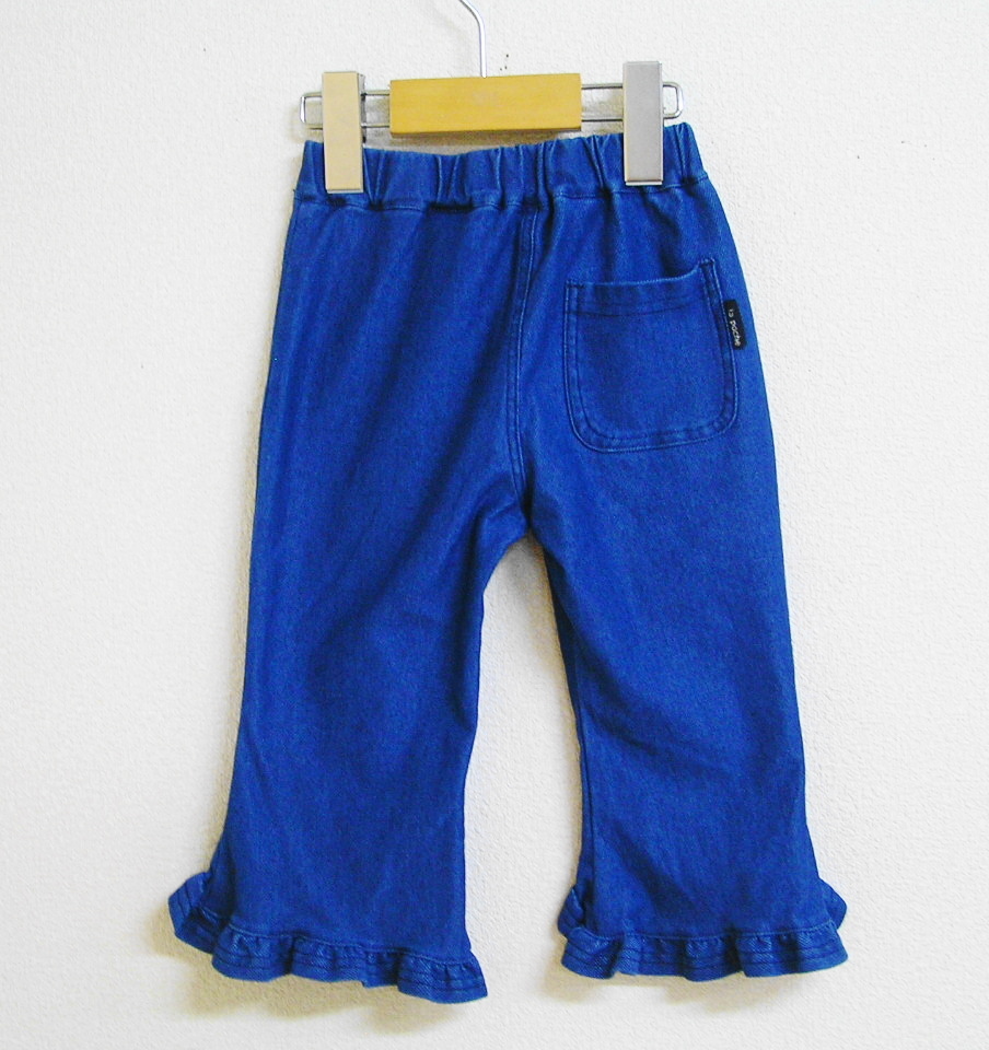 ★新品100cm★La poche biscuit 7分丈パンツ (裾フリル/サックス) ラポシェビスキュイ