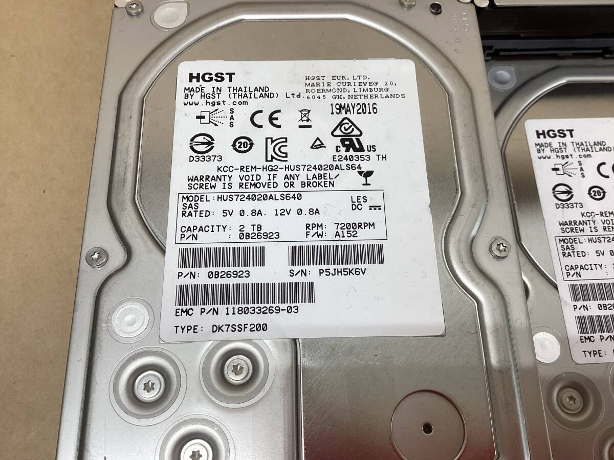 【2505270508-1】【7台セット】 BLANCCO消去済み HGST 3.5SAS(サーバーハードディスク) HUS724040ALA640 2TB 7200rpm 64MB 6Gbps