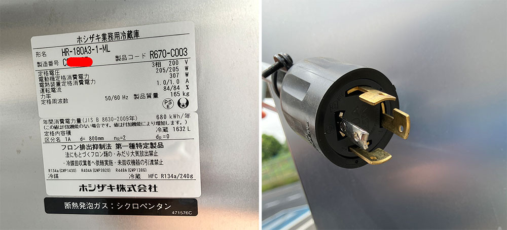 | 商品詳細 | 2023年製 動作確認済み。 -7度設定で-7度まで下がることを確認しています。 綺麗にクリーニングしてます。 アジャスター調整出来ます。 中古品ですので使用上出来る、小傷や変形/変色ございます。 写真参照してください。 商品サイズ 幅 1800×奥行 800×高さ 1910mm 重量:165Kg 簡単なスペック(メーカーページから抜粋) 電源:三相200V 電動定格消費電力:205/205W 電熱装置定格消費電力:307W 運転電流:1.0/1.0A 定格内容積:1632L 排水処理が必要な商品となります。 ※詳しい仕様等が知りたい場合はメーカーにお問い合わせください。 その他、見落としている点もあるかと思いますので、 気になる点等がございましたら、ご質問ください。 付属の排水ホースや排水エルボ/パッキン等は撤去時物になります。 再利用が難しい物も有ると思います。 パッキン等は新品を使用して水漏れ等無い様に、 ご使用ください。 冷凍庫や冷蔵庫、製氷機など冷媒を使用している機器は、 設置後すぐに電源を入れると故障の原因となります。 設置後は冷媒安定のため、数時間(できましたら半日)程度は、 電源を入れられないようにお願い致します。 |