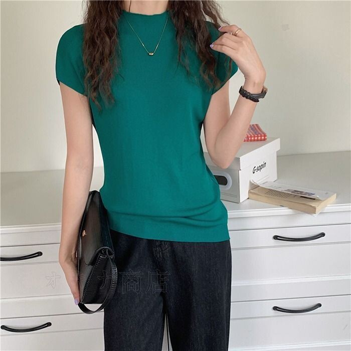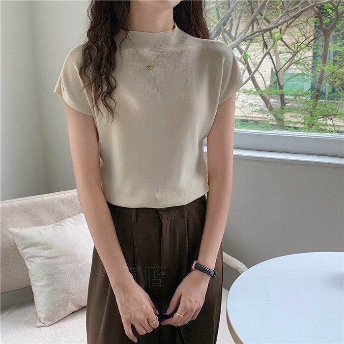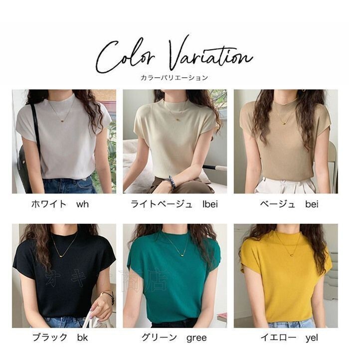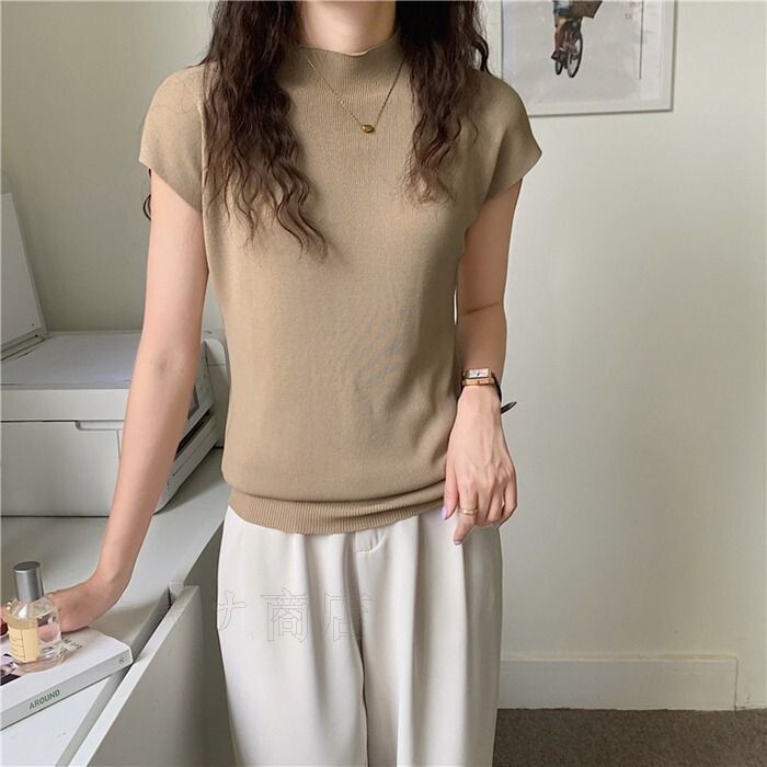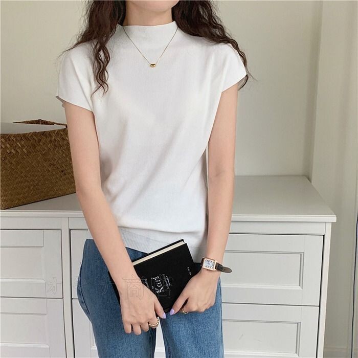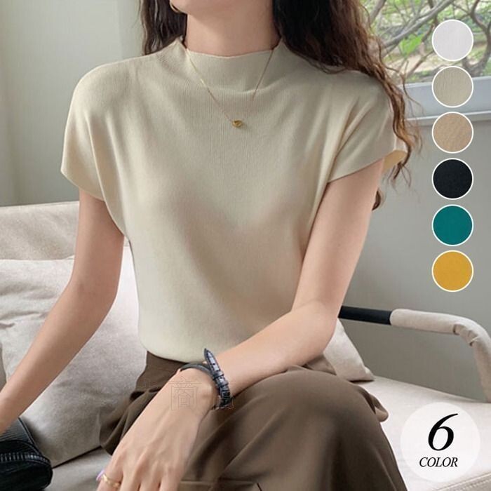 ハーフタートルネック ニット セーター レディース 春 夏 半袖 トップス アイスシルク スリムフィット シンプル サマーニット ニ