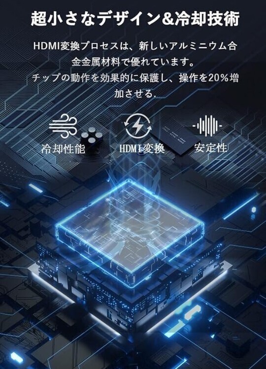 【プレミアムデザイン】小型の設計で、それに持ち運びが便利です。HDMI入力に対応した変換ケーブルを使用することで、さまざまな機器と接続できます。外装は軽量アルミ合金製で、放熱効果が20%アップ。 物理的な冷却により、チップの使用は効果的に保護されます。