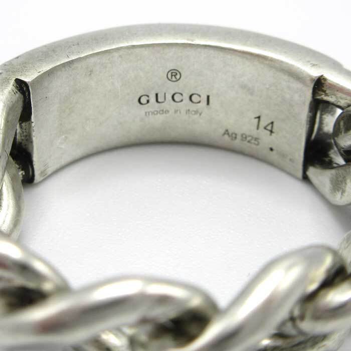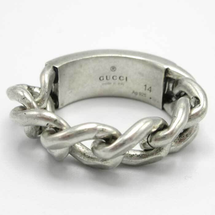 ■グッチ リング 指輪 アクセサリー GUCCI ロゴエナメルプレート ゴルメットチェーン アンティーク加工 シルバー925 SV925 Ag925 678711 J8410 ブティックライン レディース メンズ RG GUCCI TAG ENAMEL ARG.925/SMALTO