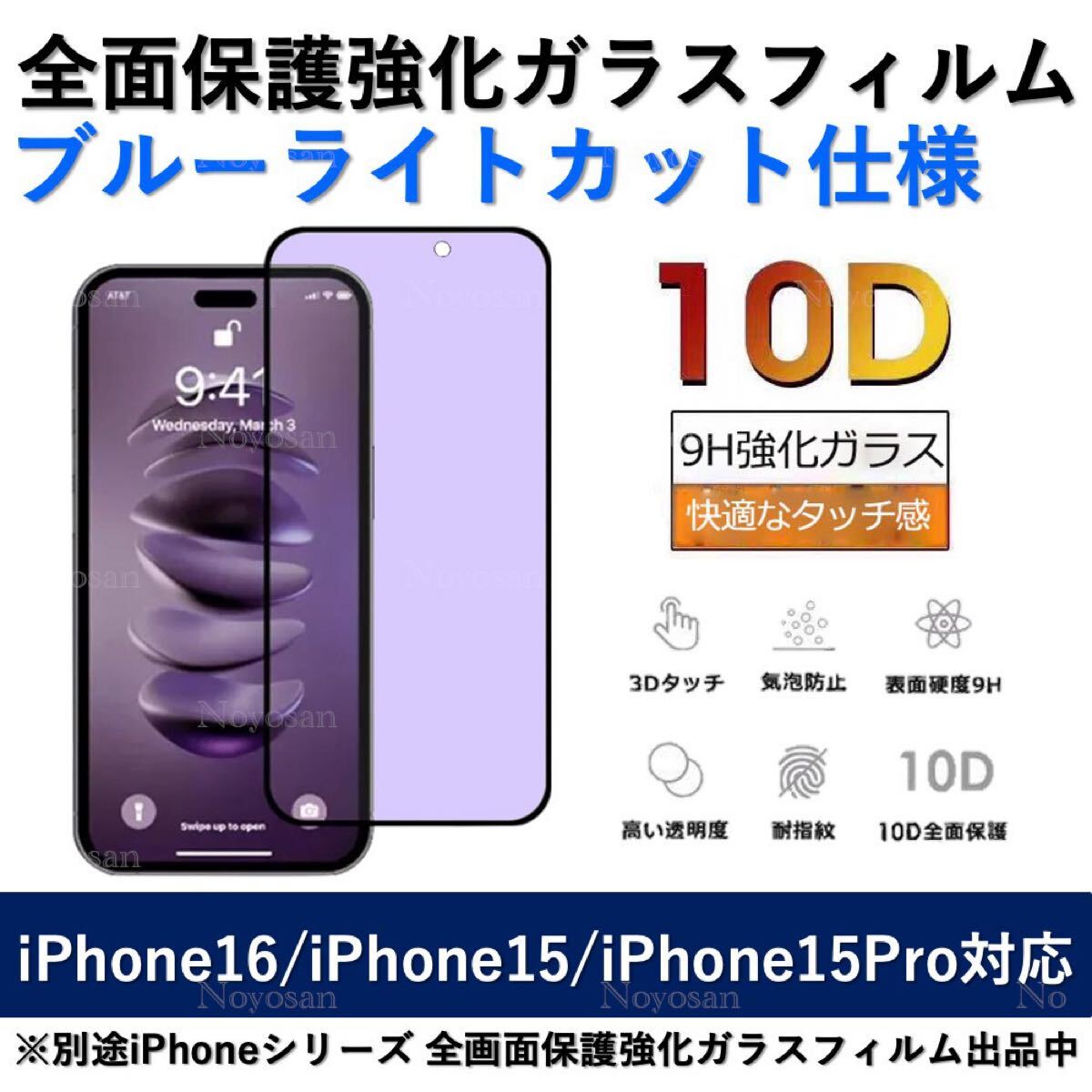 【新品】iPhone 16 / iPhone 15 / iPhone 15Pro ブルーライトカット全面保護強化ガラスフィルム