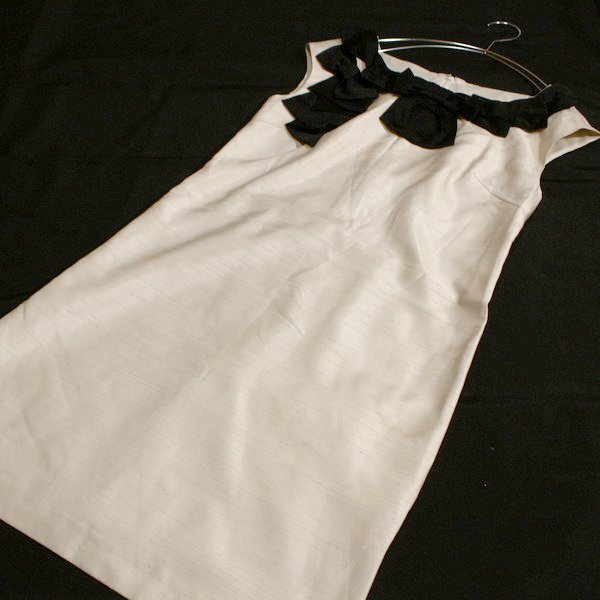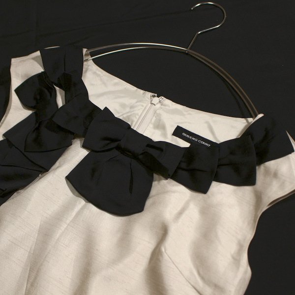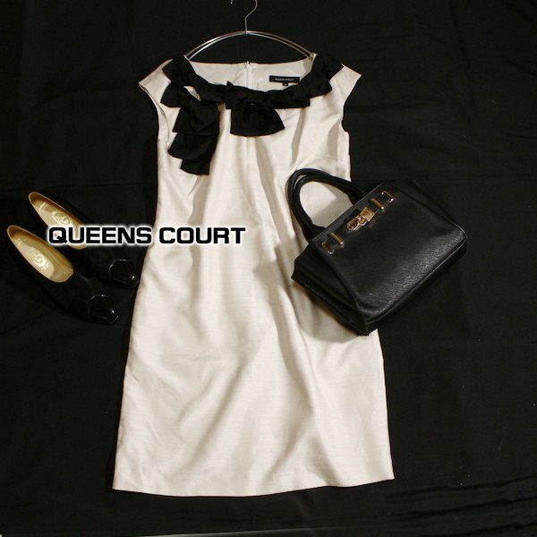 美品 QUEENS COURT クイーンズコート 綺麗めリボン シャンタン生地 ワンピース 2号 M 春 夏 25C06