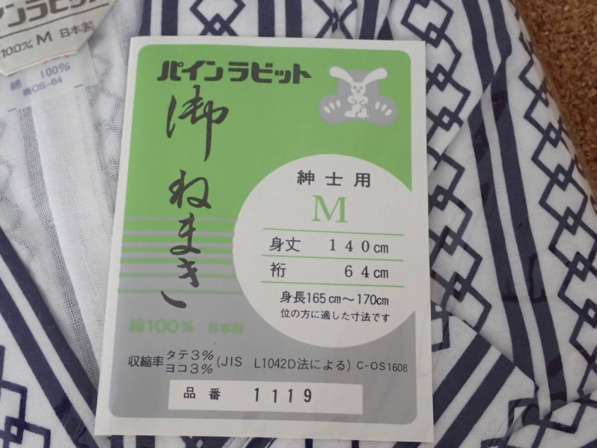 1) パインラビット 紳士用 ガーゼ 浴衣おねまき M 日本製 発送要相談