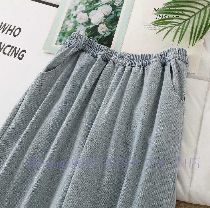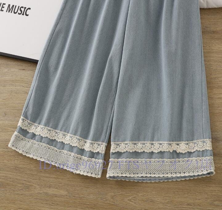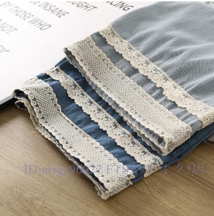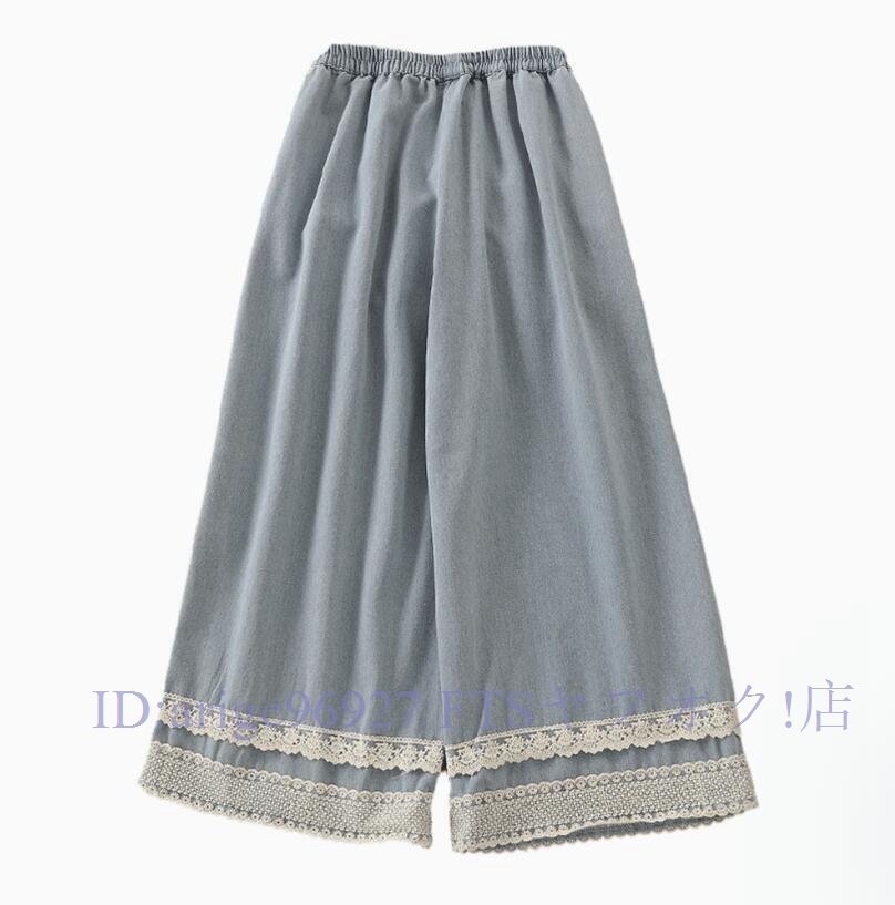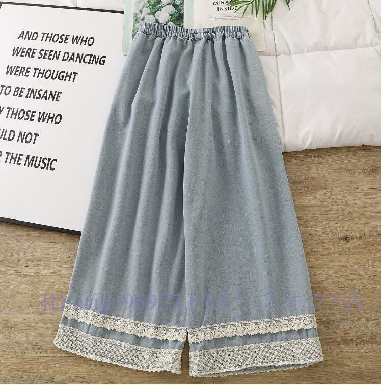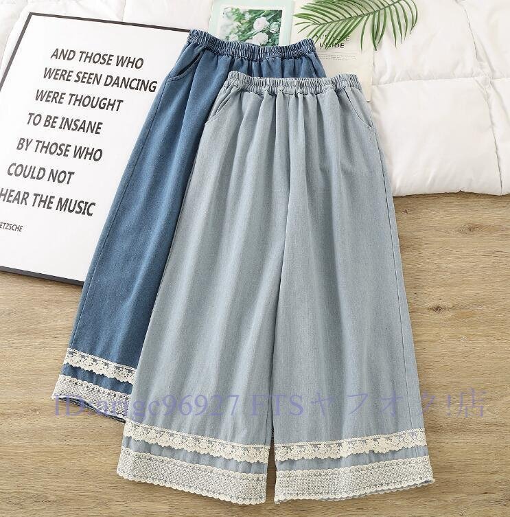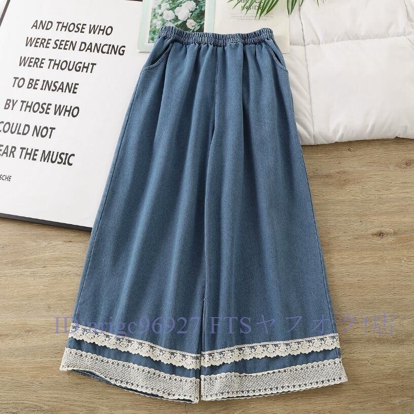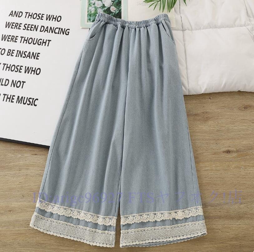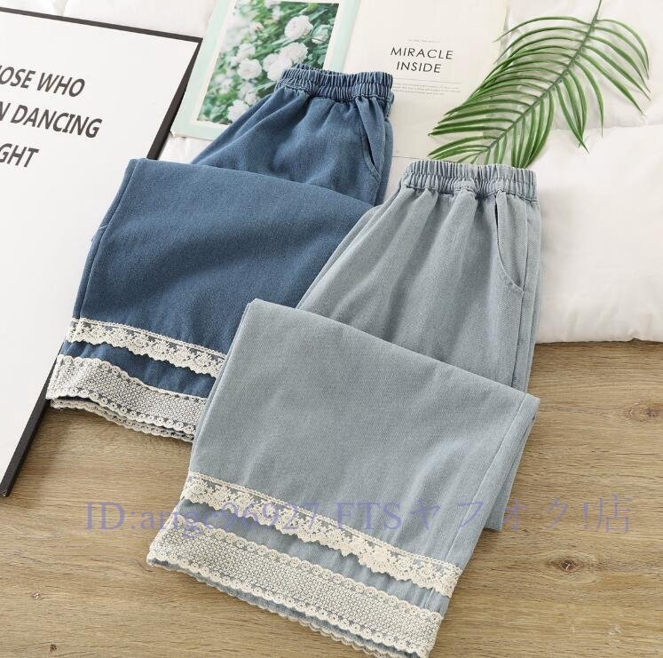 新品★パンツ デニム ジーンズ レース ワイルド パンツ 綿100% ゆったり オシャレ フリーサイズ ナチュラル 大人可愛 浅い色