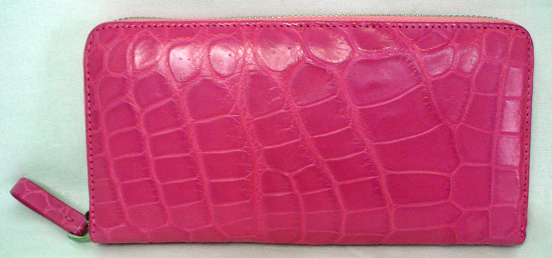 クロコダイル ラウンド型 長財布 ピンク 展示品在庫処分 1579