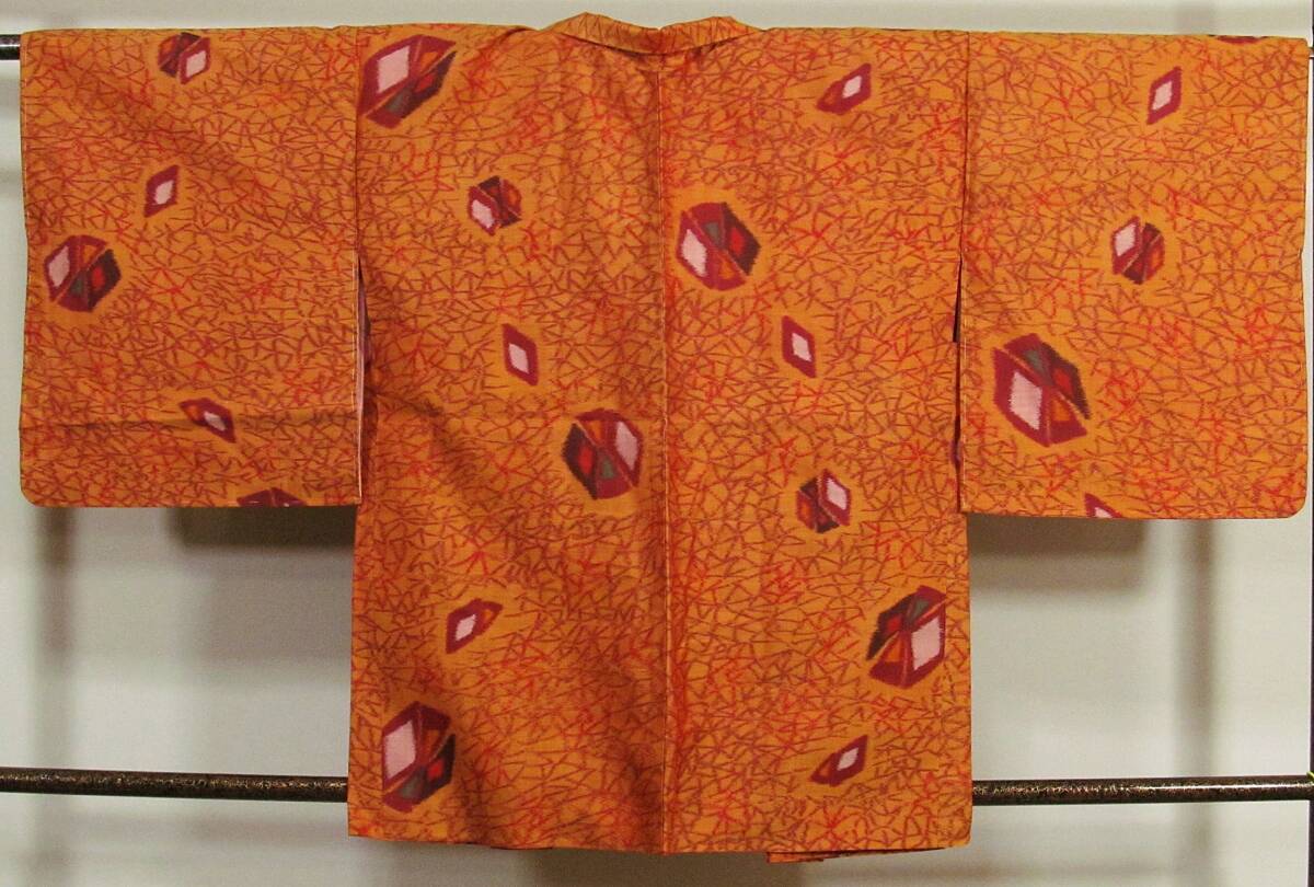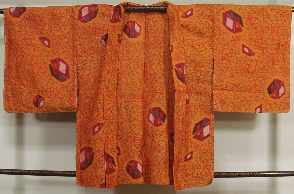 の54 正絹 アンティーク 銘仙 羽織 創作的な柄 身丈81cm