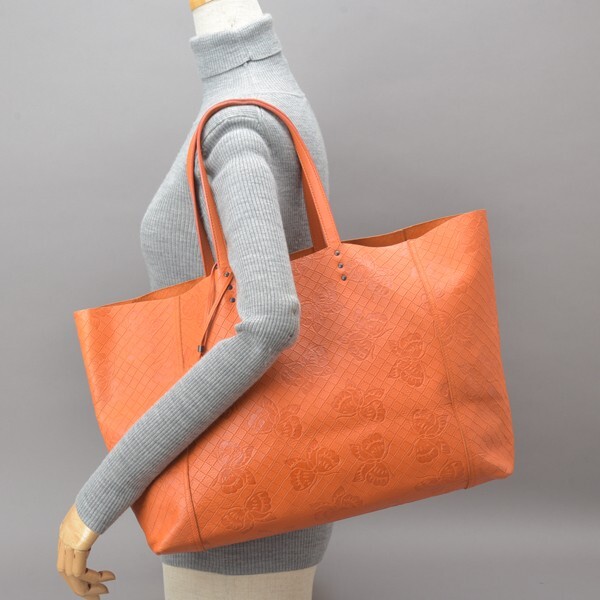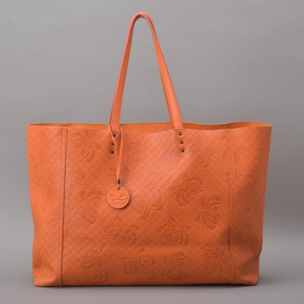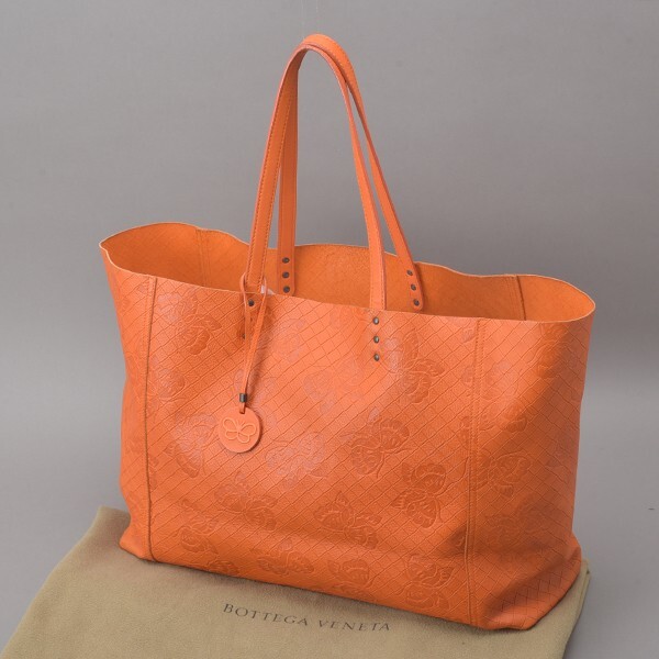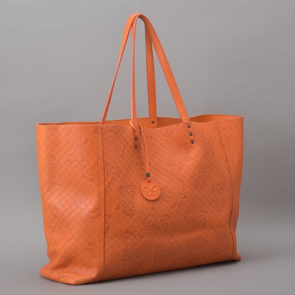 極美品 ボッテガヴェネタ イントレッチオミラージュ トートバッグ オールレザー オレンジ 蝶 バタフライ 本革 肩掛け 鞄 /070424-47/b.c
