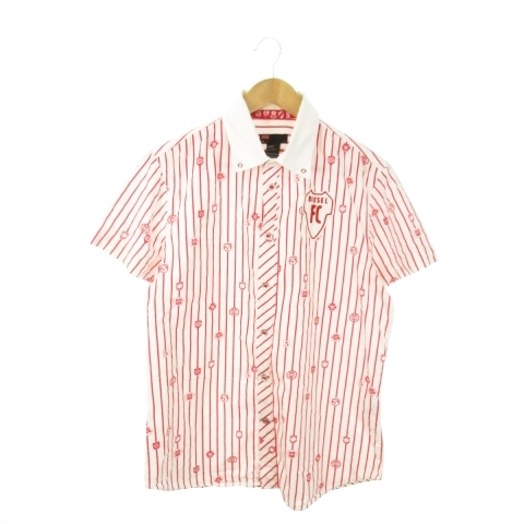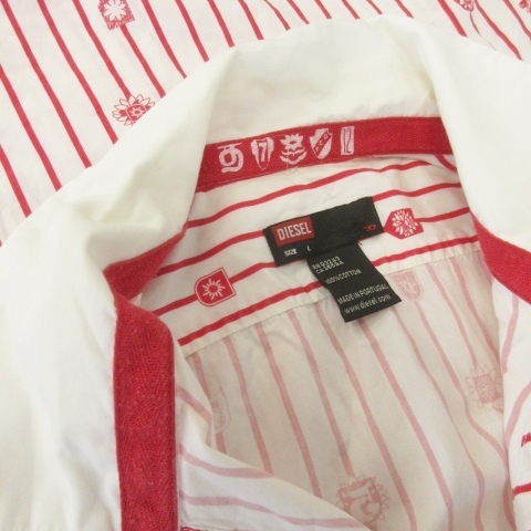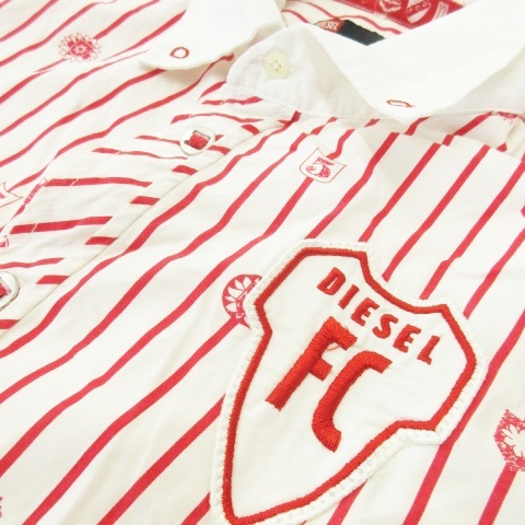 ディーゼル DIESEL 半袖シャツ コットン ワッペン DIESEL FC ストライプ 花柄 L 白 ホワイト /MN13 ■GY11 メンズ
