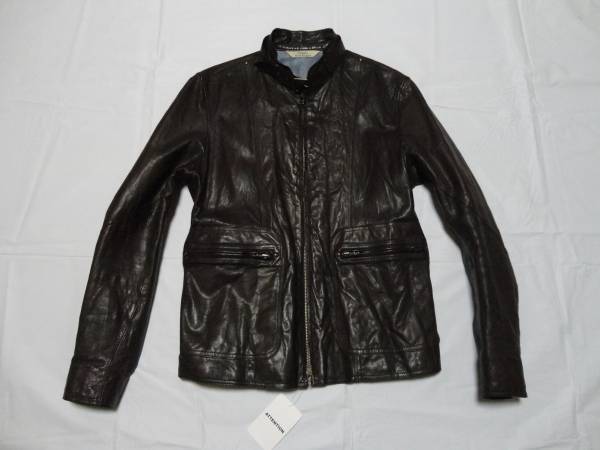 シンプルで非常に人気のあるデザインですが、落ち着いた無骨な色合いが印象的で、寡黙でありながらも頼りになる大人の男をイメージさせるような雰囲気の、羊革のシングルライダースレザージャケットです。