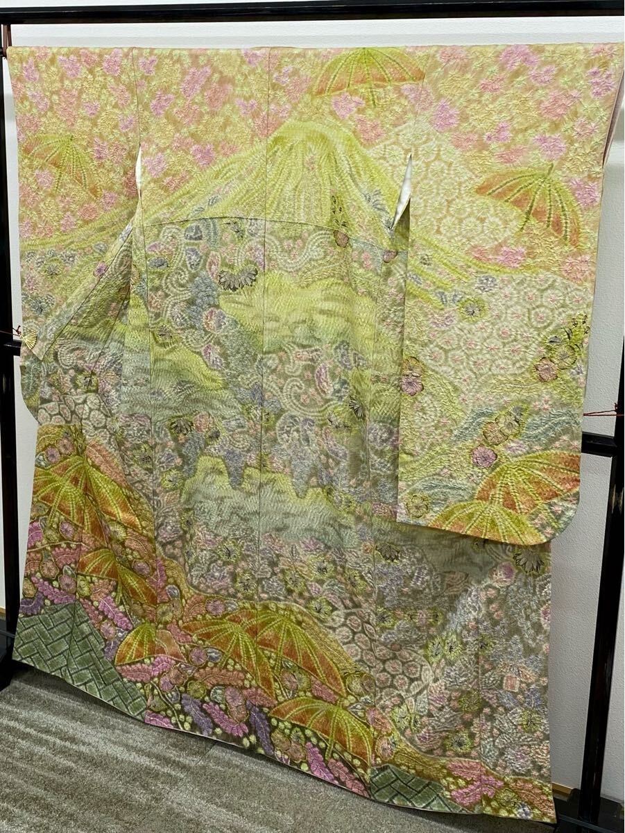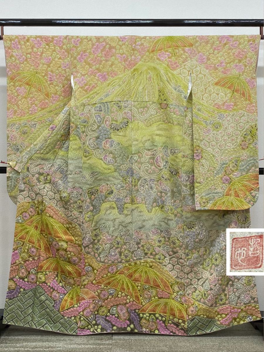 樋熊哲也 総絞り 振袖 落款入 辻ヶ花 金通し 正絹 ガード加工済