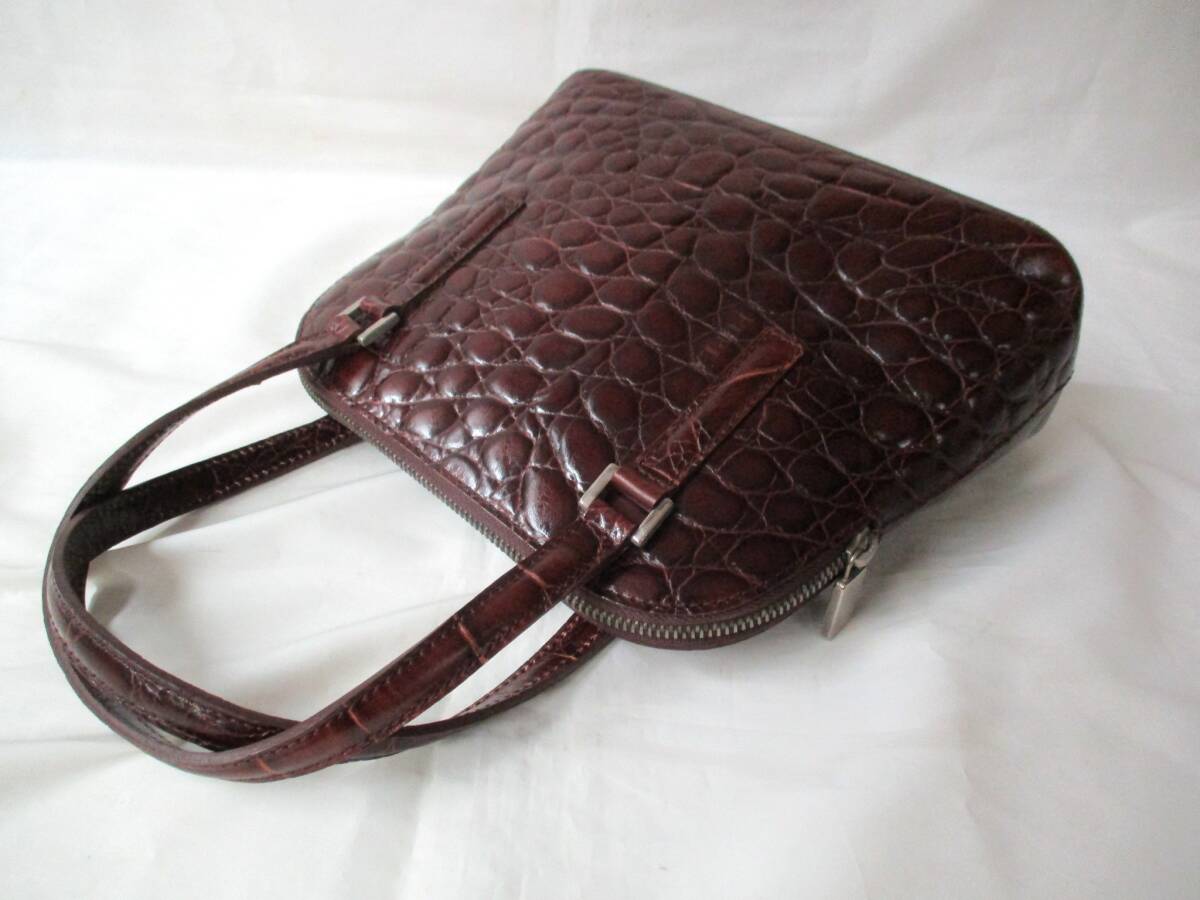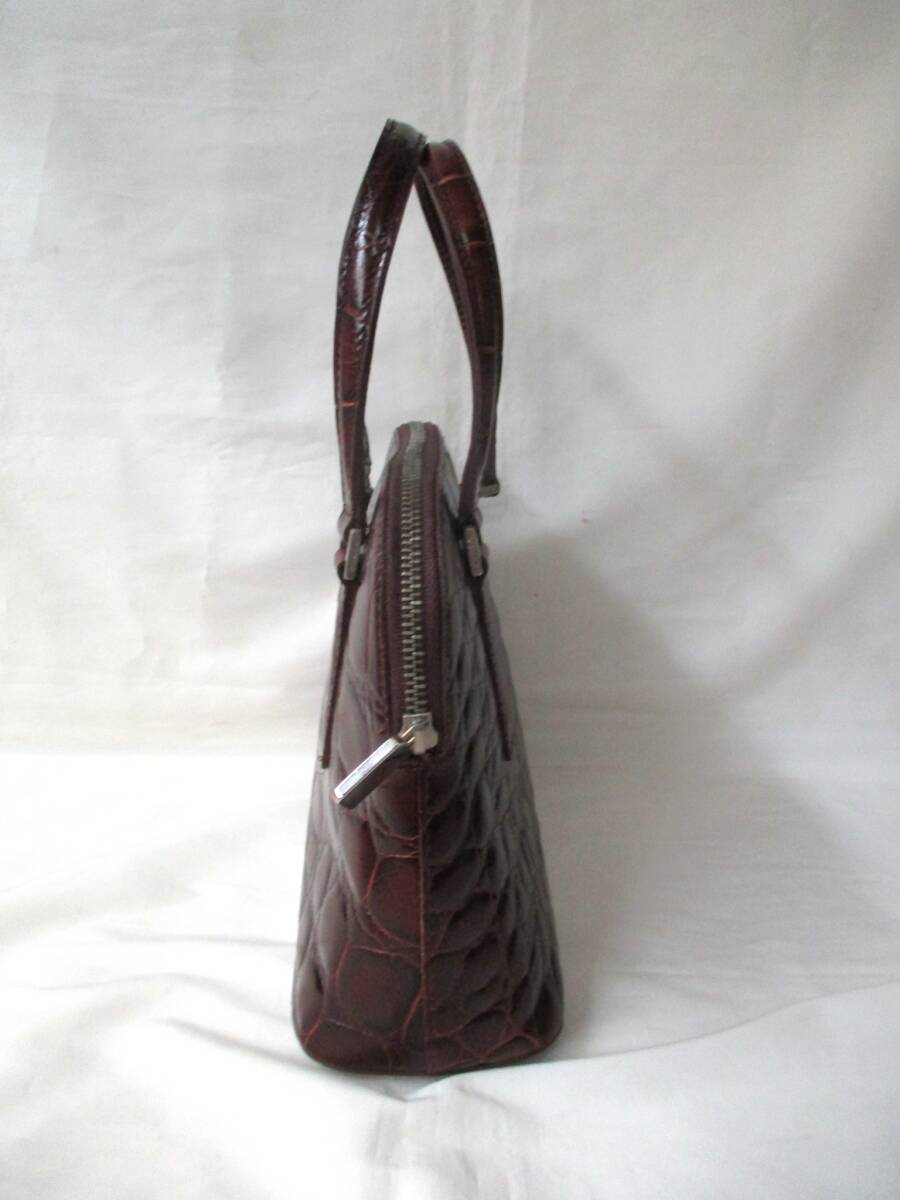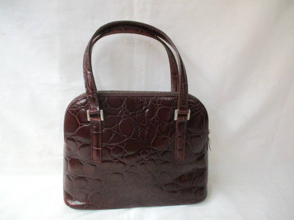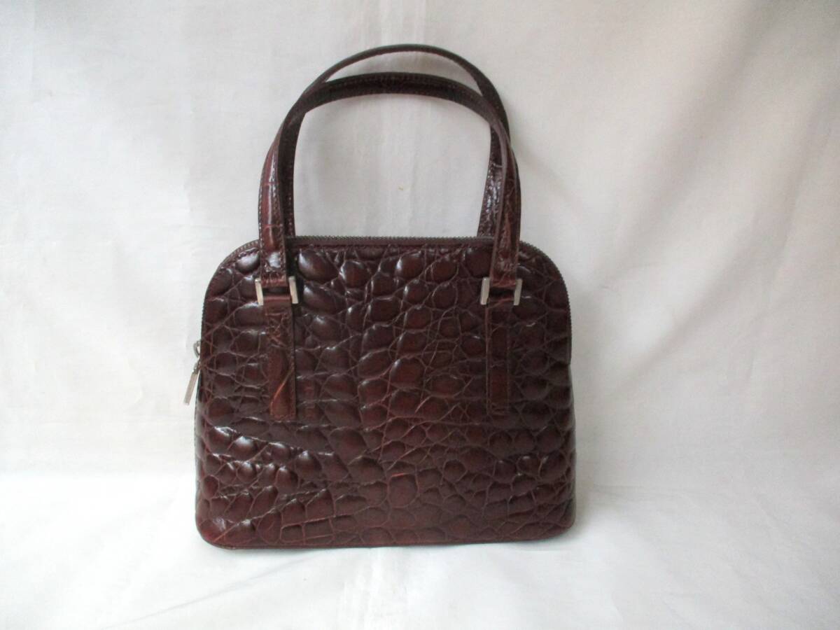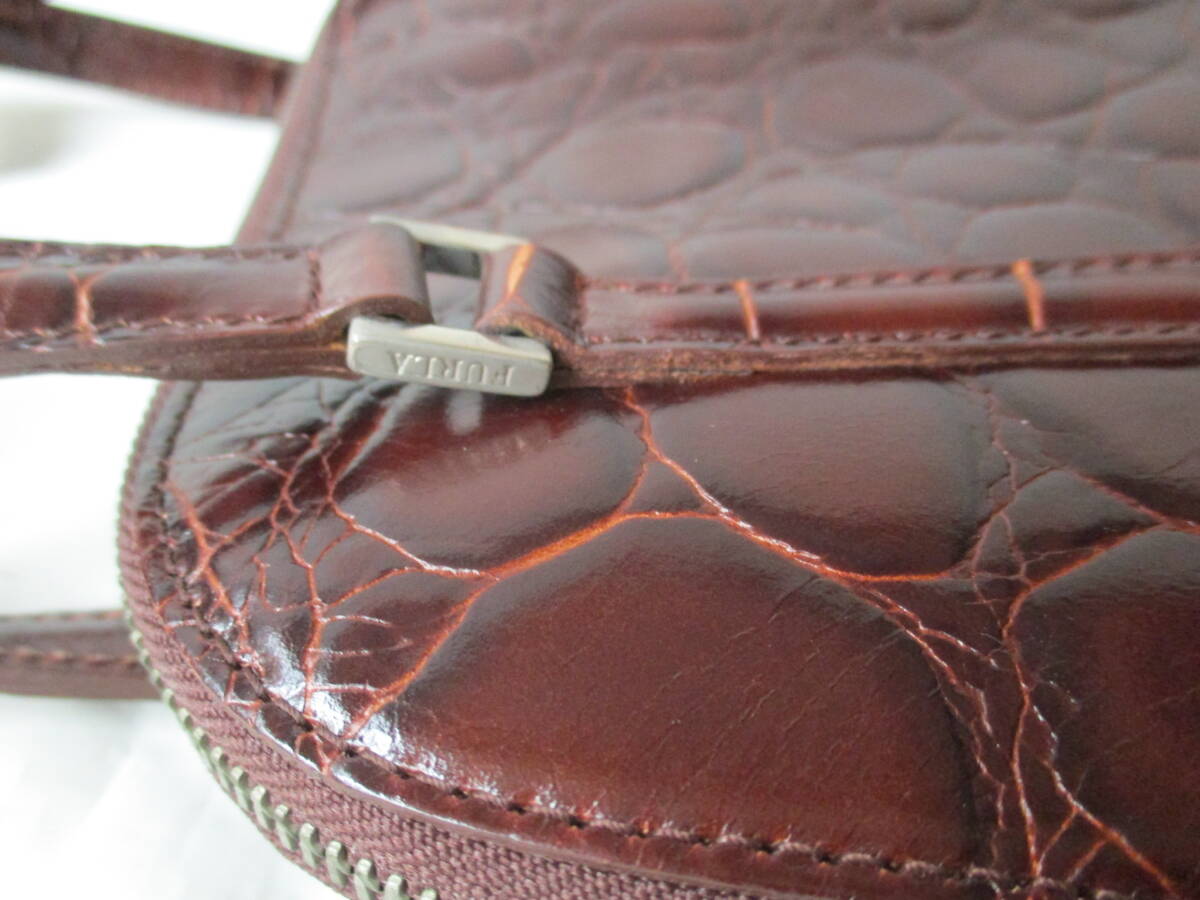 レトロ イタリア製 FURLA フルラ ハンドバッグ 型押し ダークブラウン    (管29-80LB)