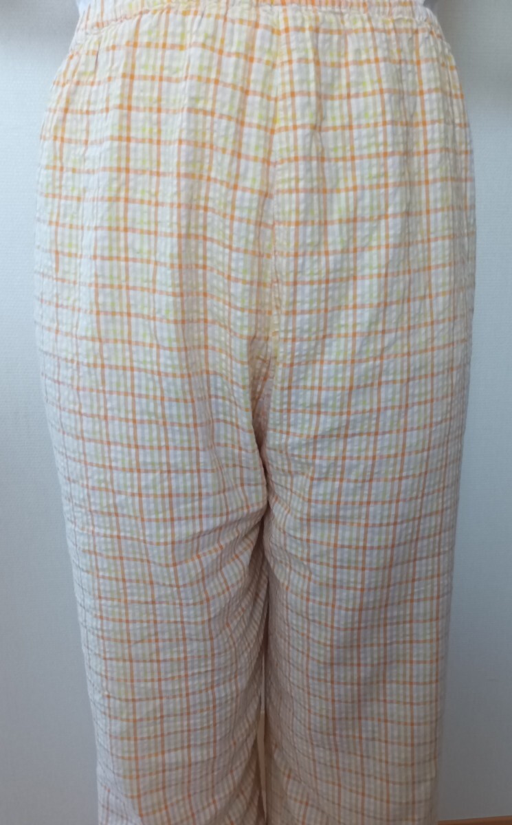 レディース JK春夏用パジャマ 下のみの出品です。足首まである普通丈のパジャマで.とても涼しい春夏用の生地です。ヒップの辺りが30センチは大ーきく切れています。ホームクリーニング済です。全体的ボロいためお掃除用にお使い下さい。