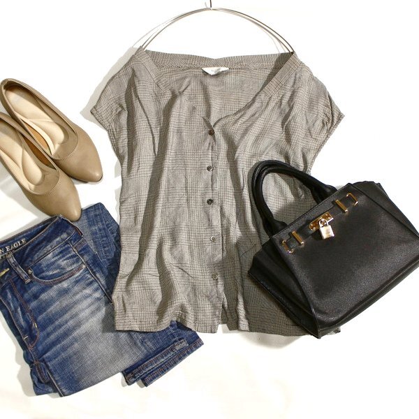 グレンチェック柄とフレンチスリーブのデザインシャツです。